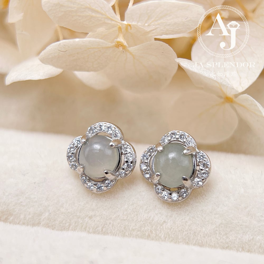 FBE-H09 天然翡翠A玉 冰糯純銀耳環