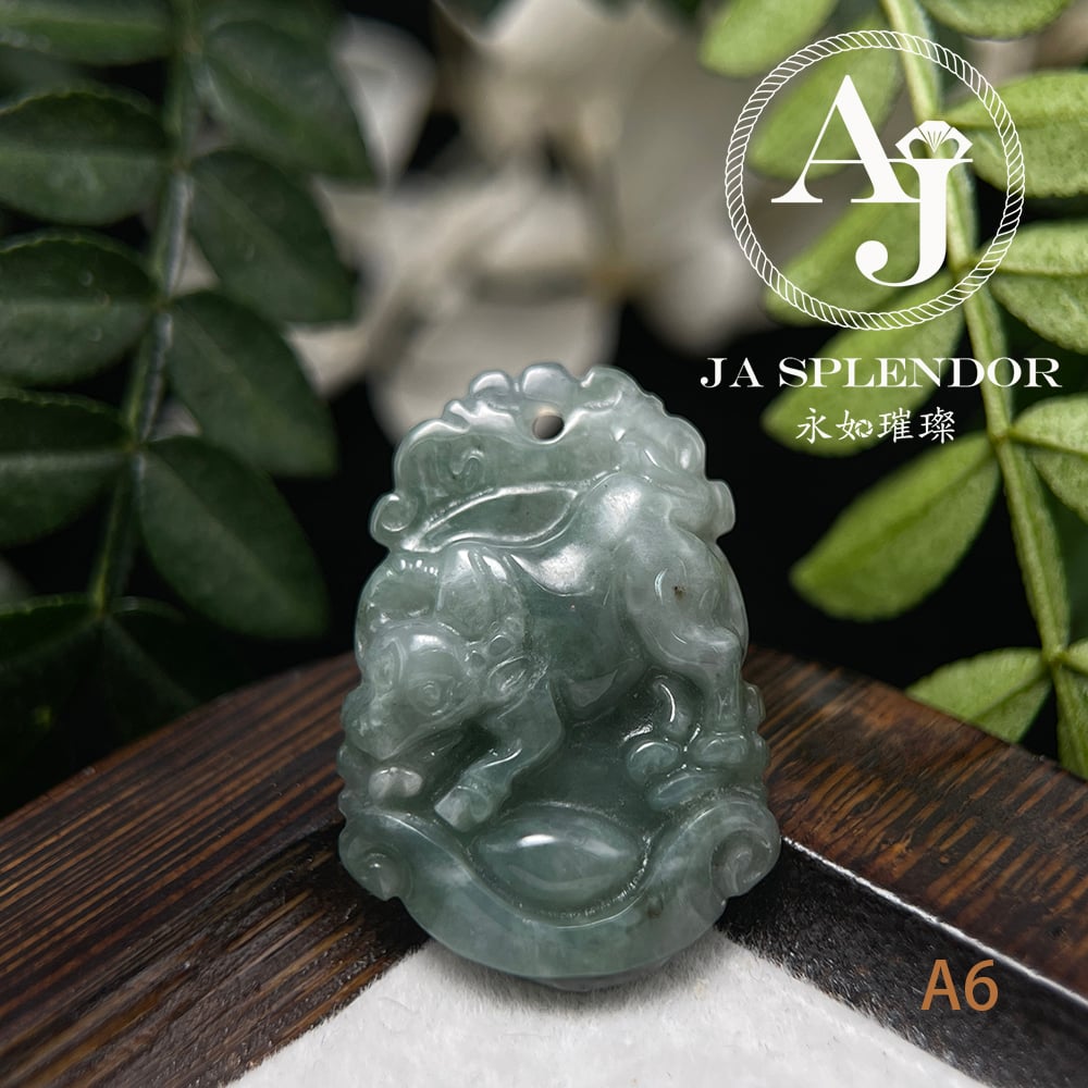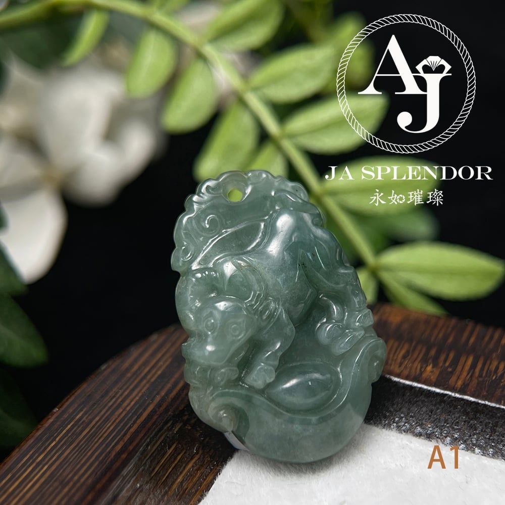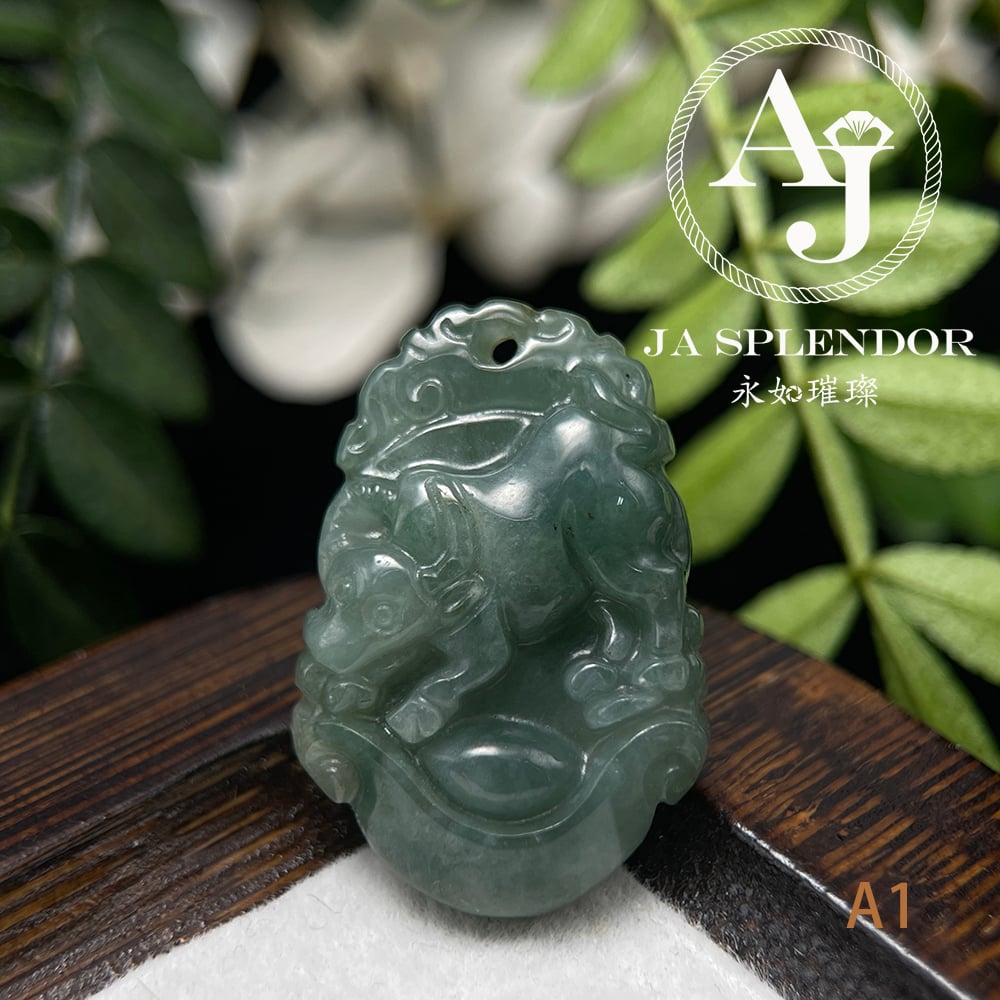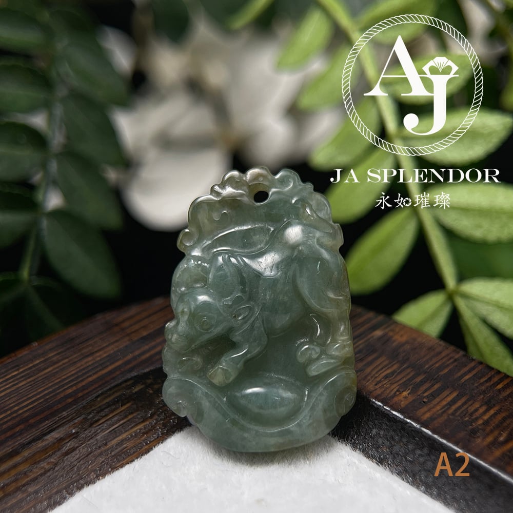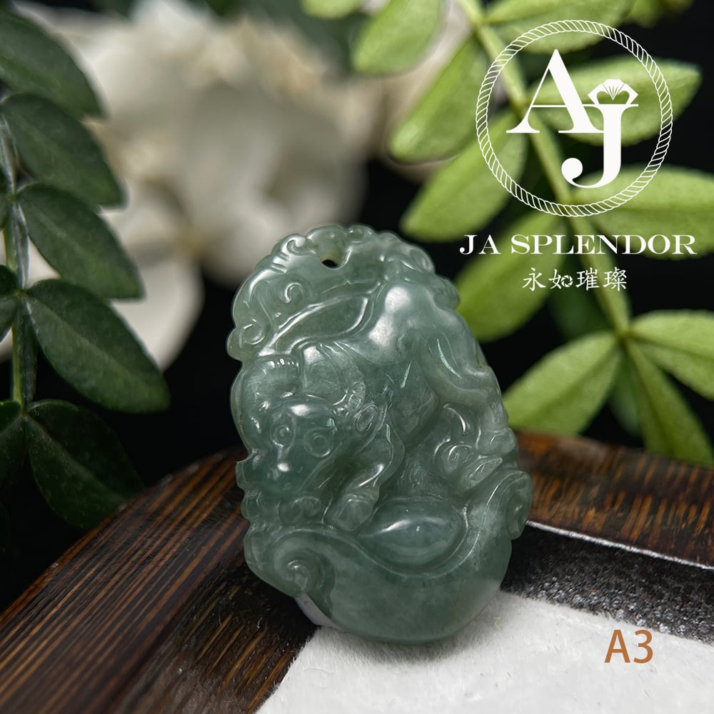 FBG25-08 天然翡翠A玉 油青種化太歲十二生肖【牛】小吊墜