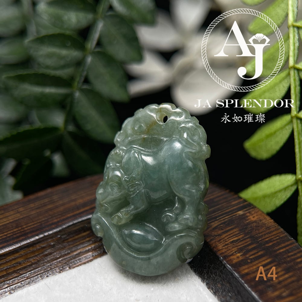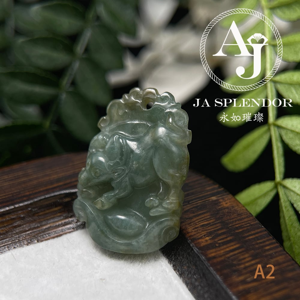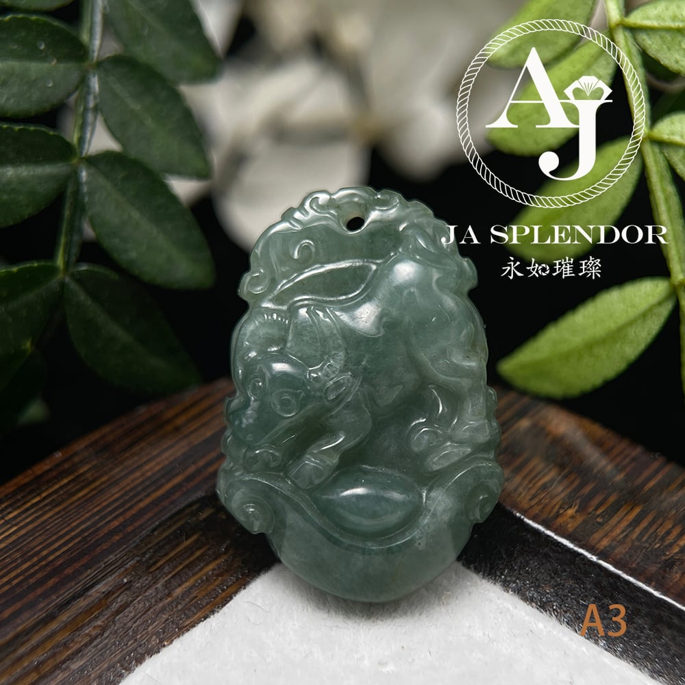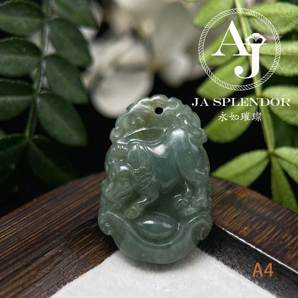 FBG25-08 天然翡翠A玉 油青種化太歲十二生肖【牛】小吊墜
