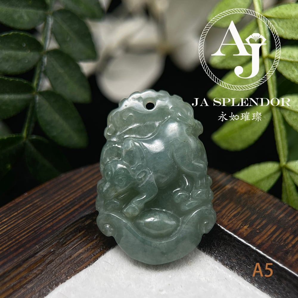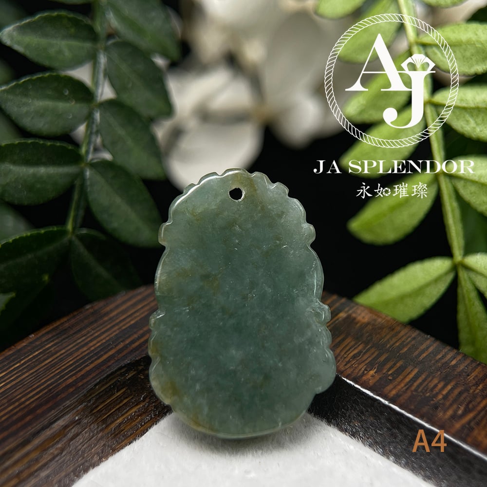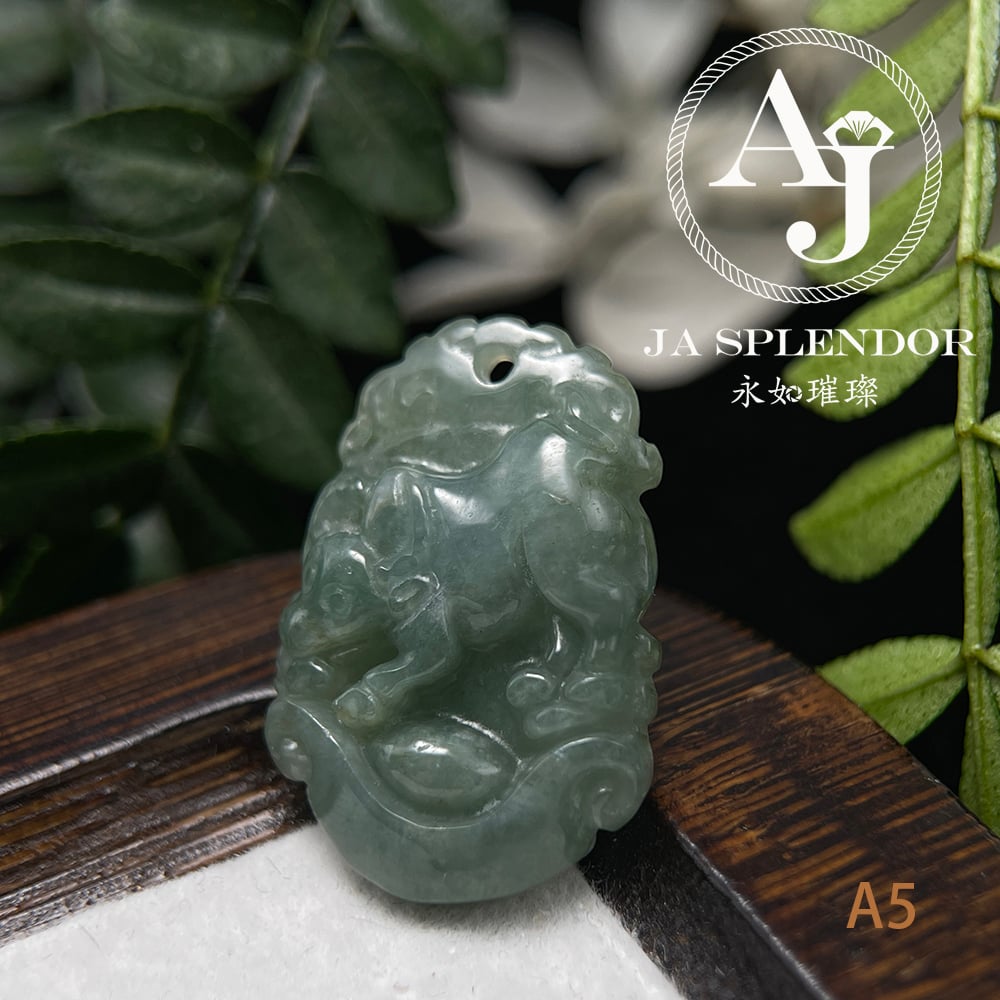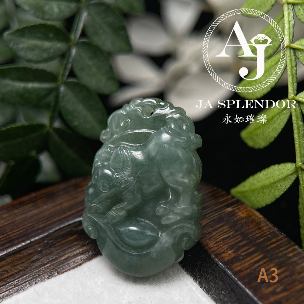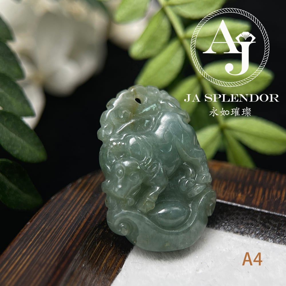 FBG25-08 天然翡翠A玉 油青種化太歲十二生肖【牛】小吊墜