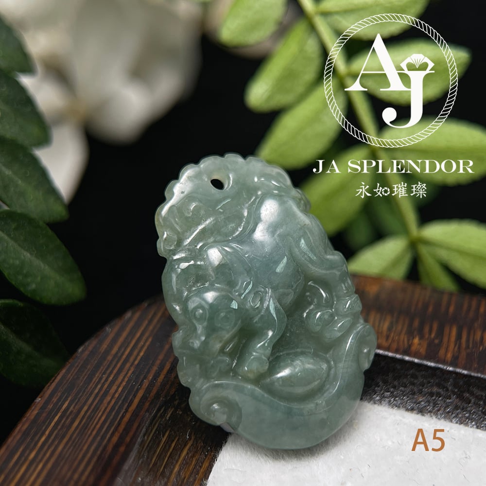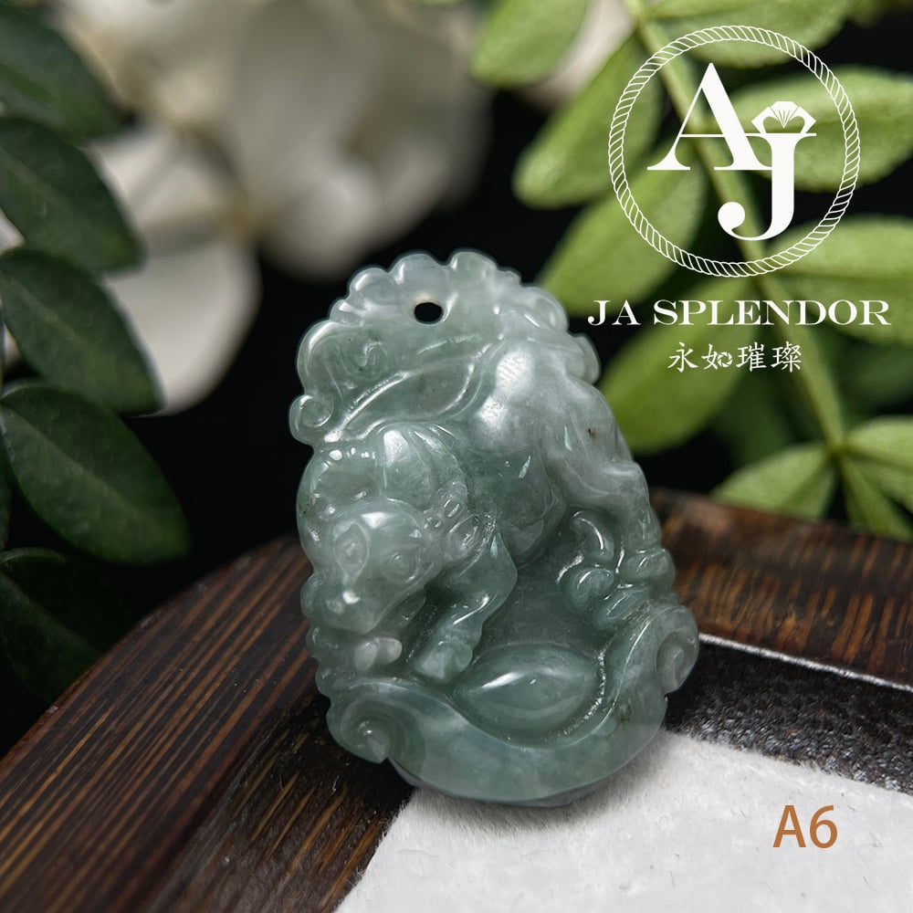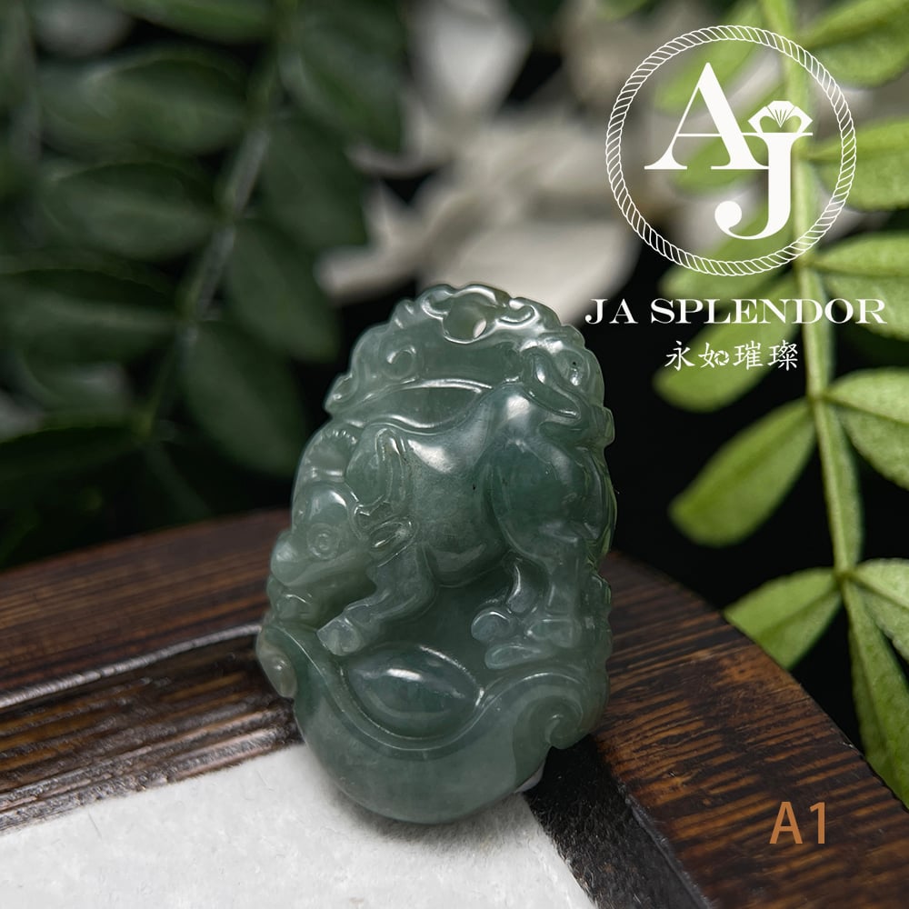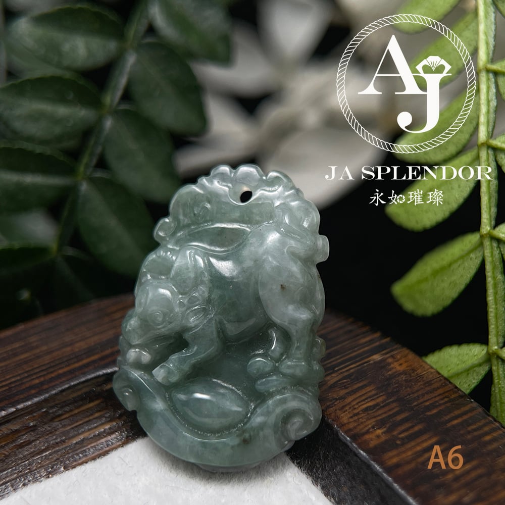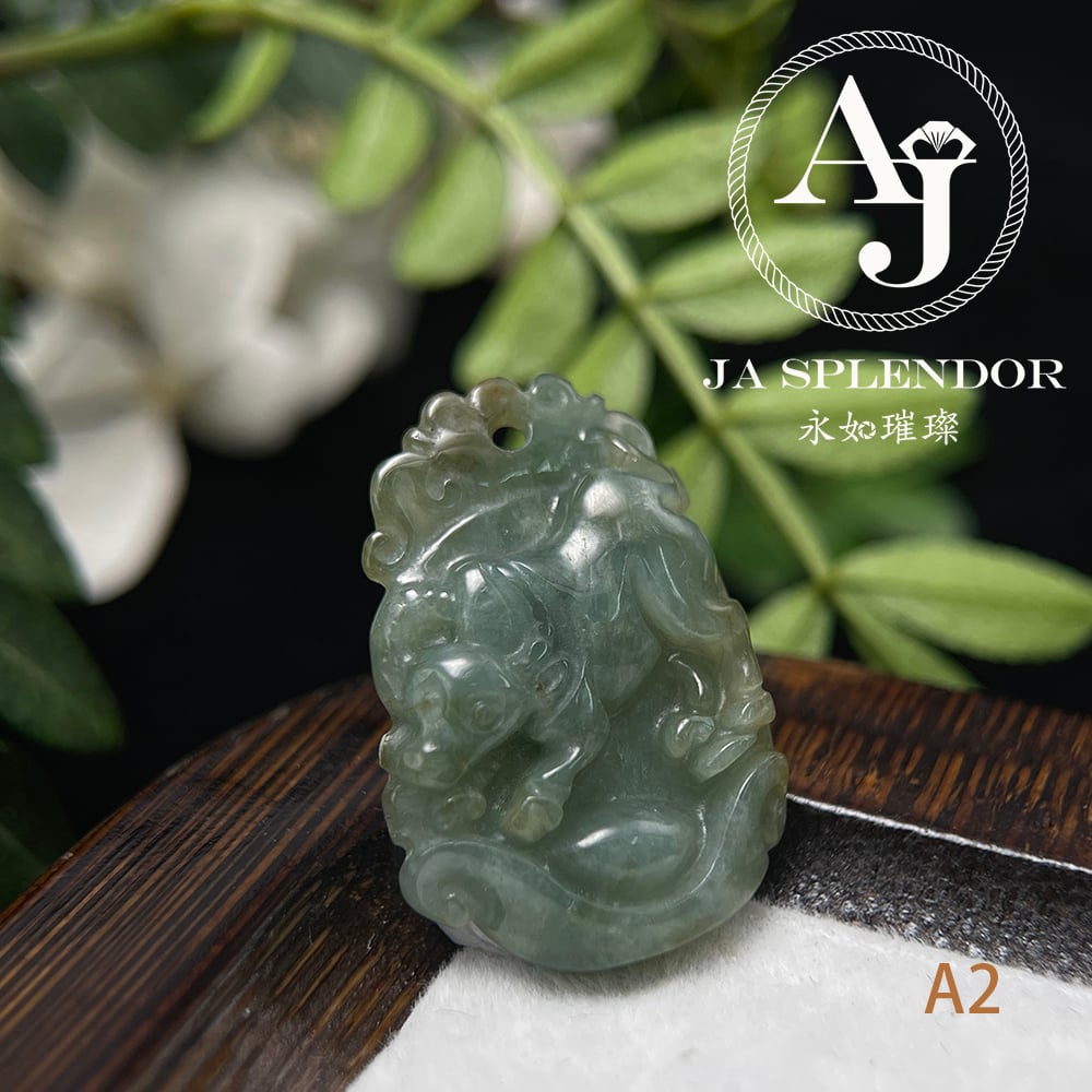 FBG25-08 天然翡翠A玉 油青種化太歲十二生肖【牛】小吊墜