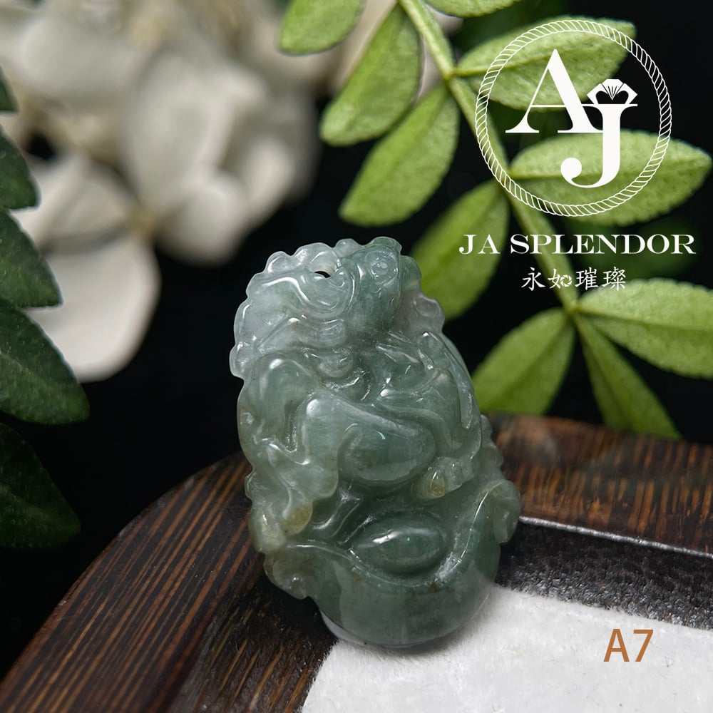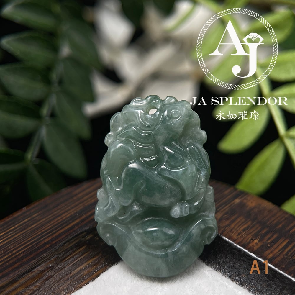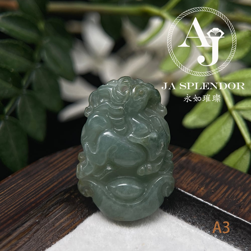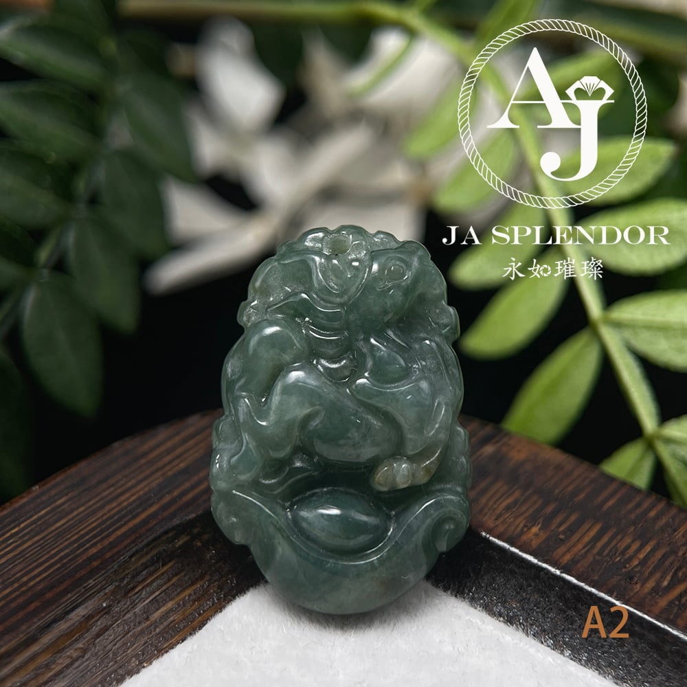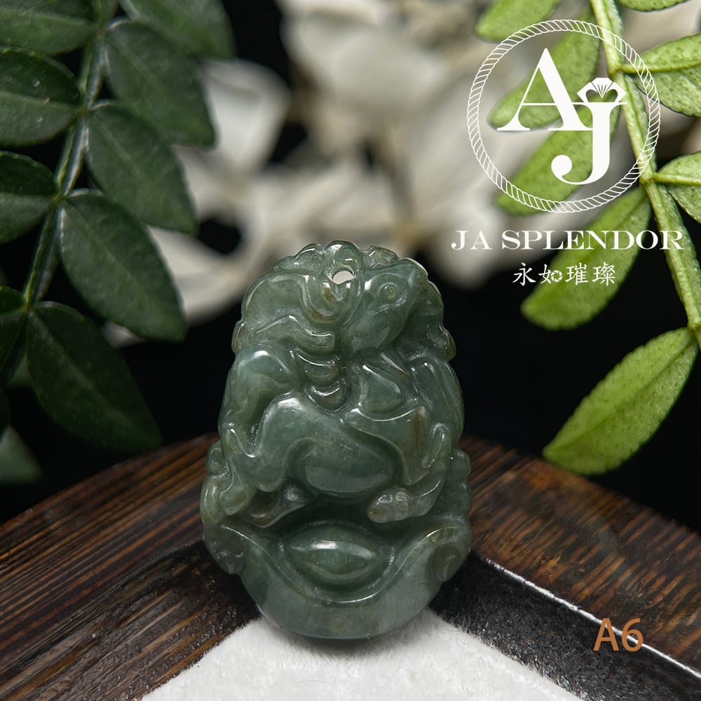 FBG25-08 天然翡翠A玉 油青種化太歲十二生肖【馬】小吊墜