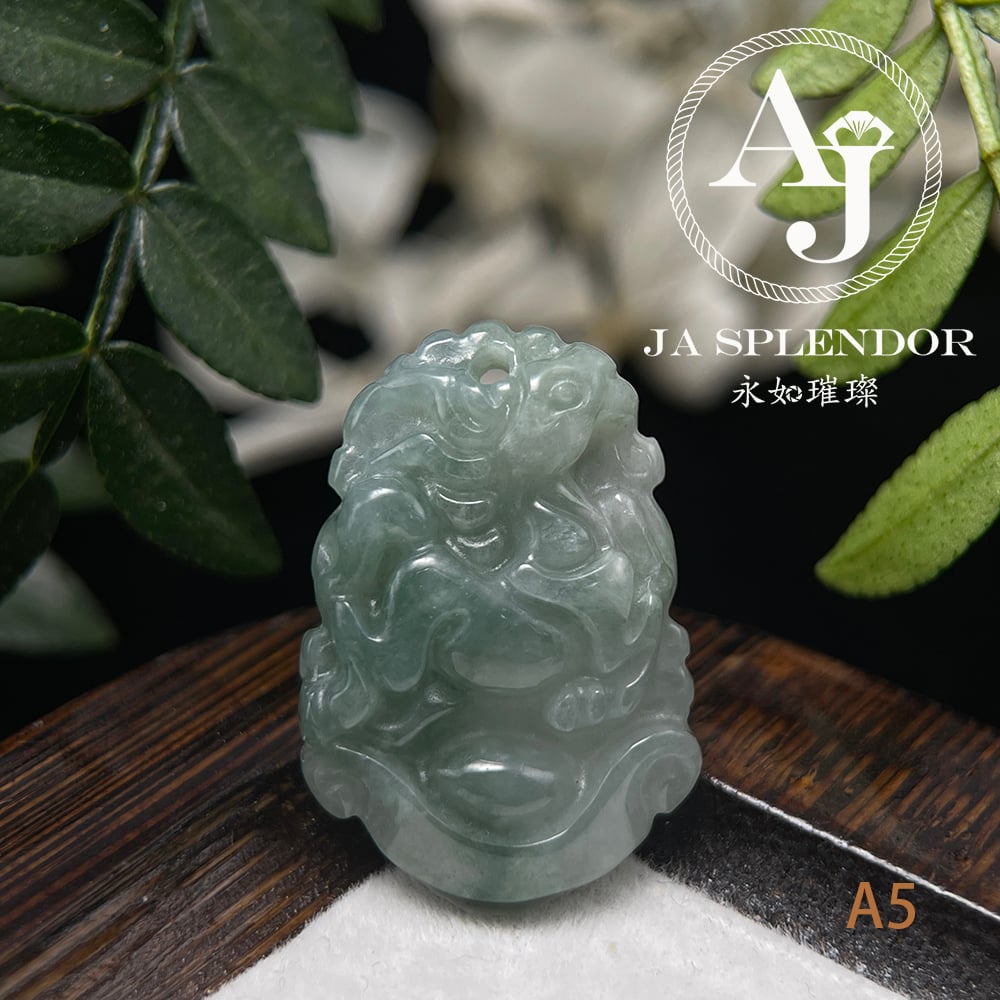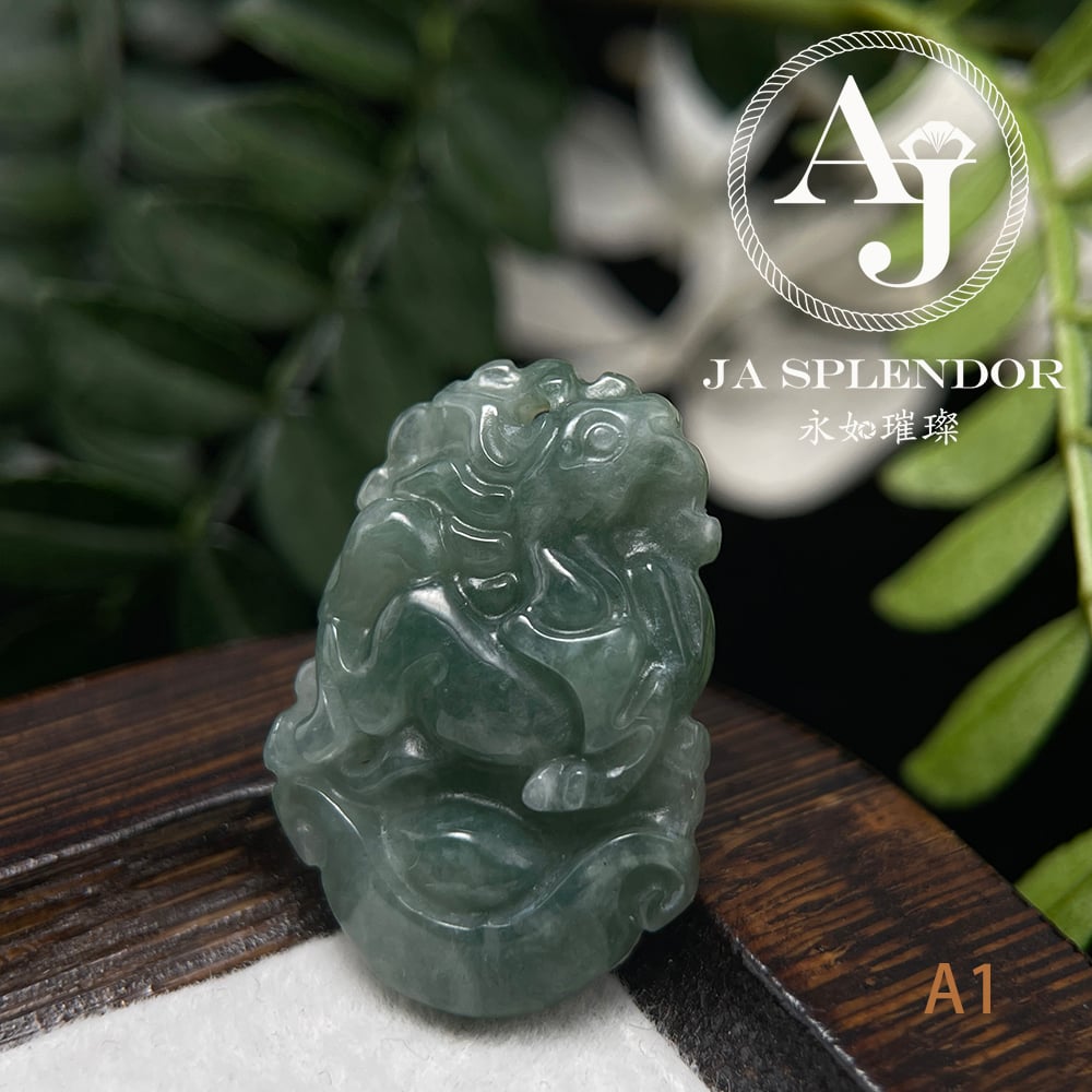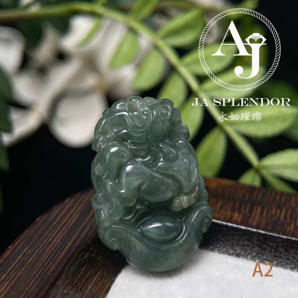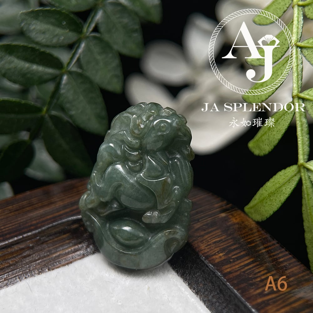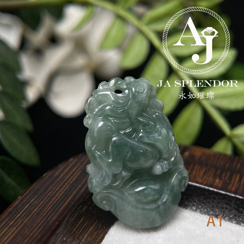 FBG25-08 天然翡翠A玉 油青種化太歲十二生肖【馬】小吊墜