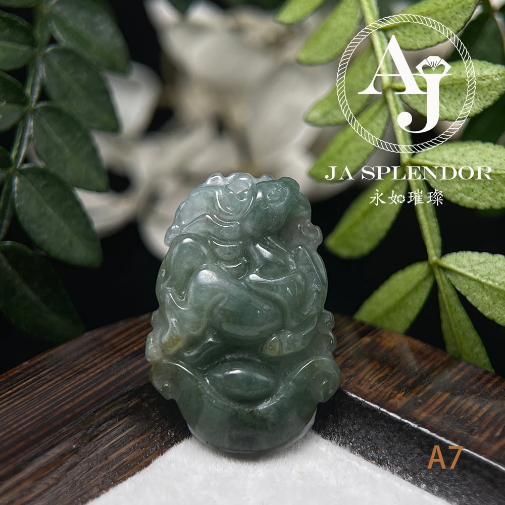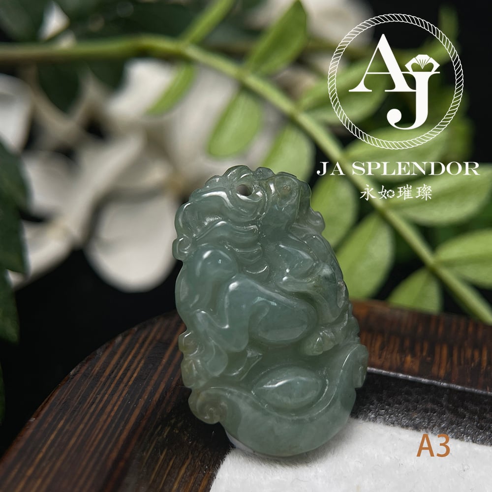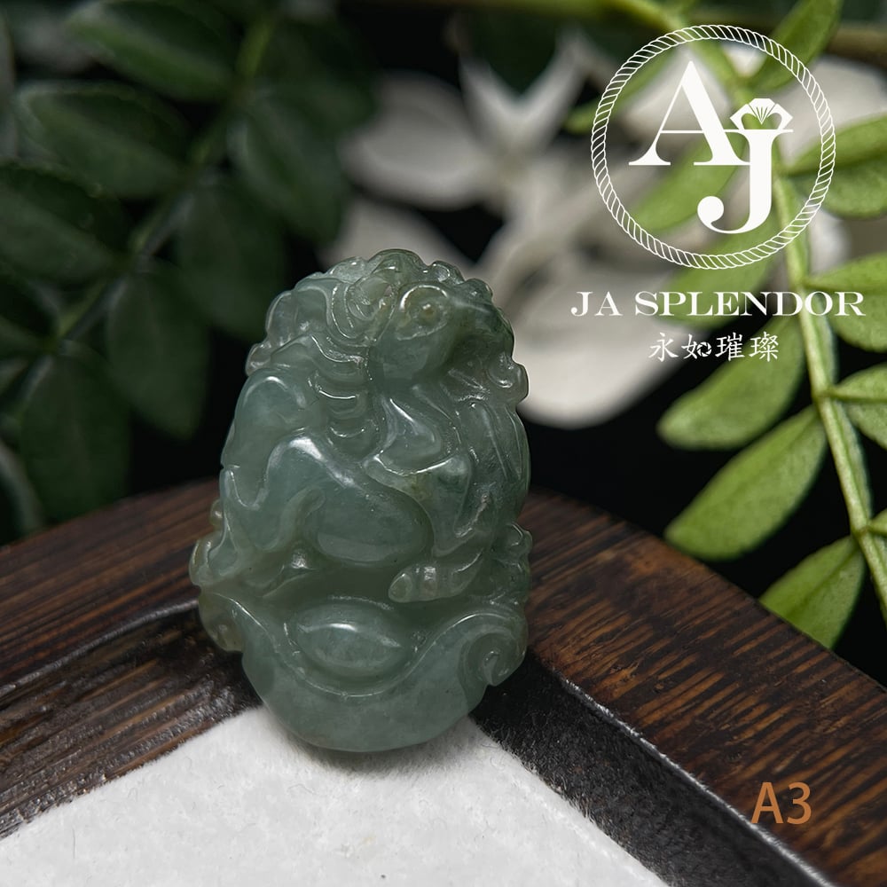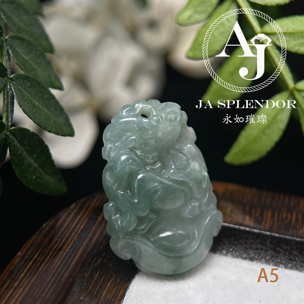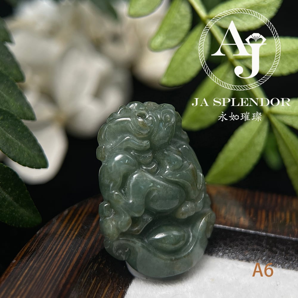 FBG25-08 天然翡翠A玉 油青種化太歲十二生肖【馬】小吊墜