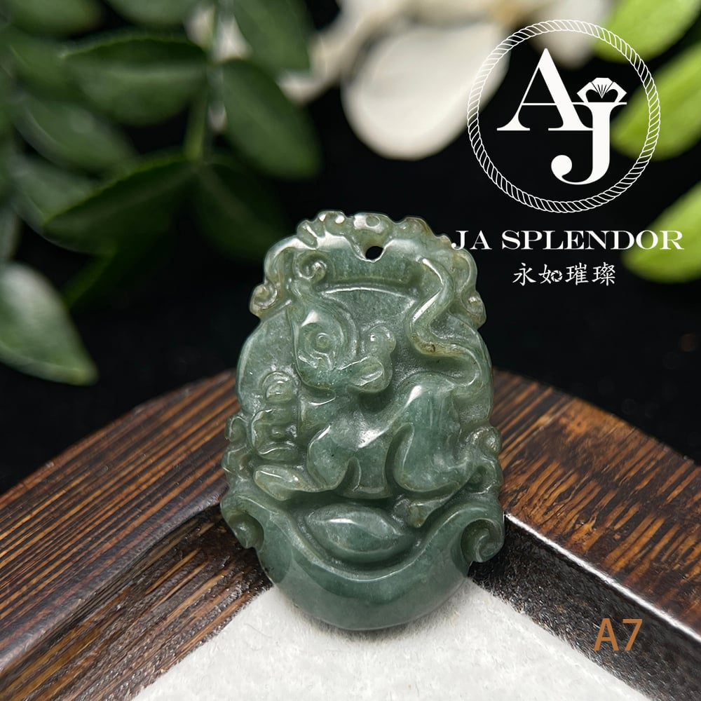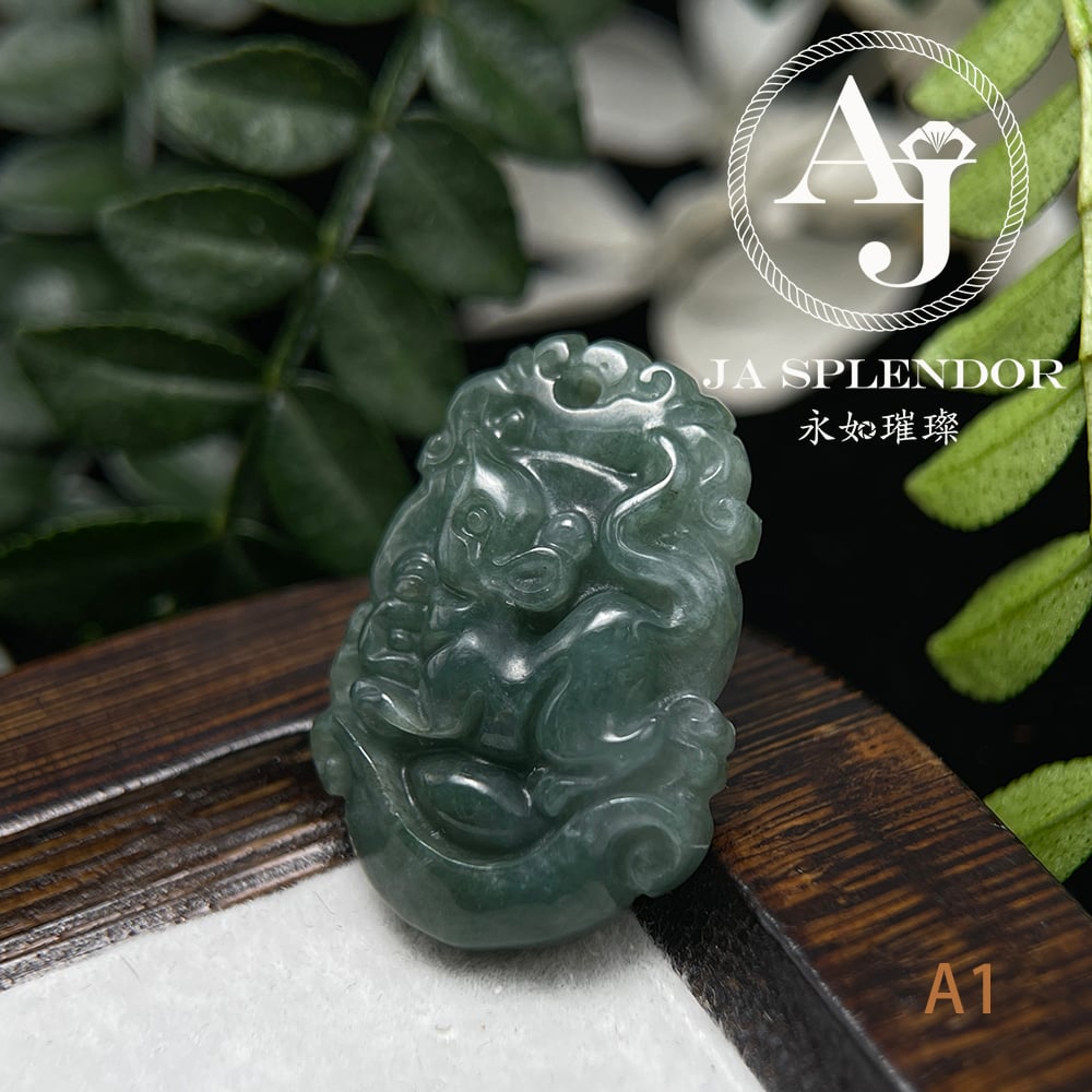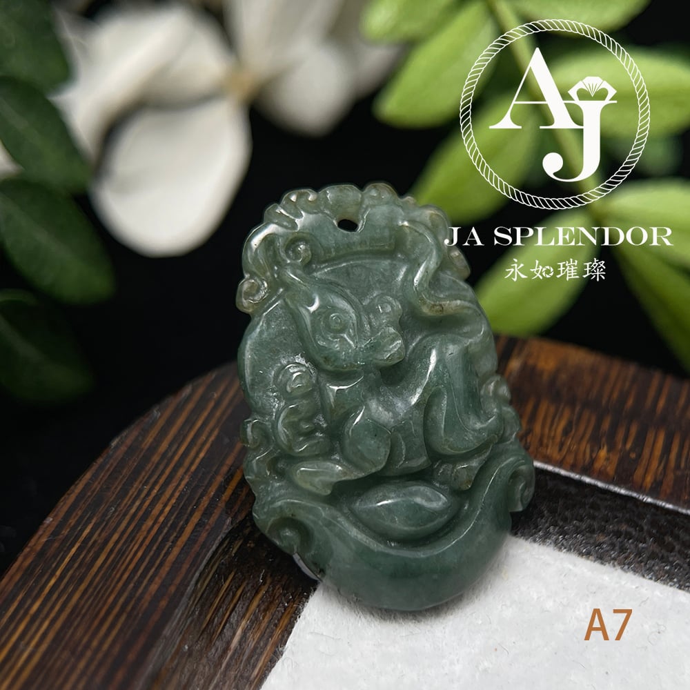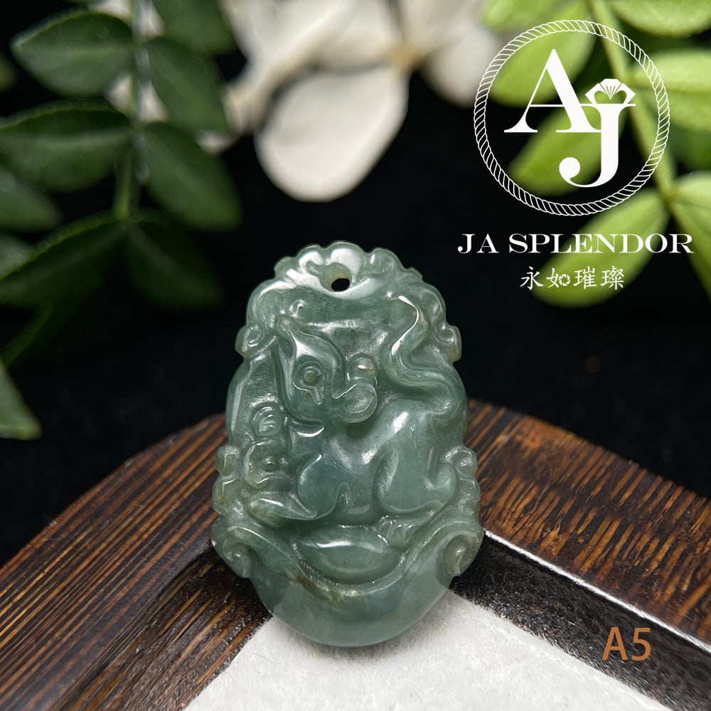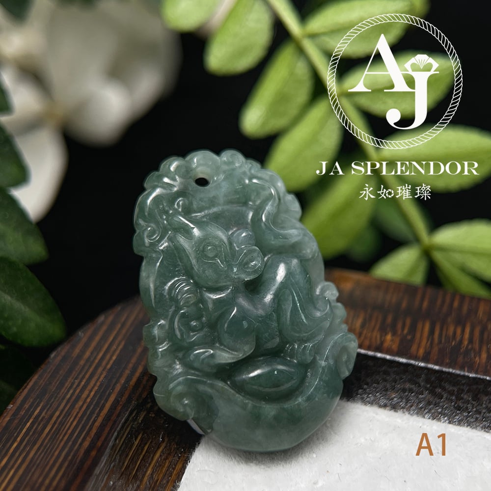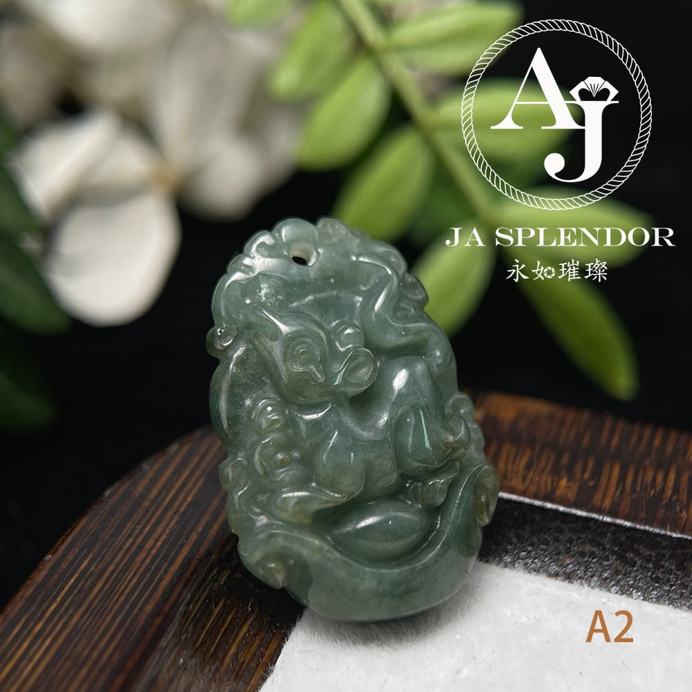 FBG25-08 天然翡翠A玉 油青種化太歲十二生肖【鼠】小吊墜
