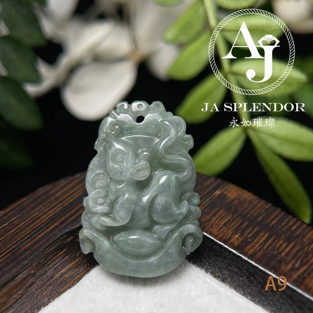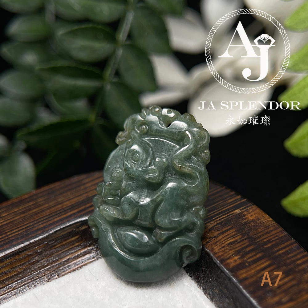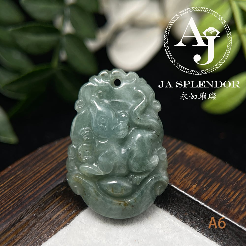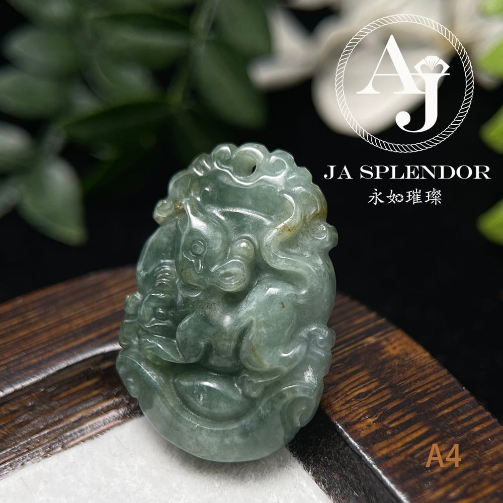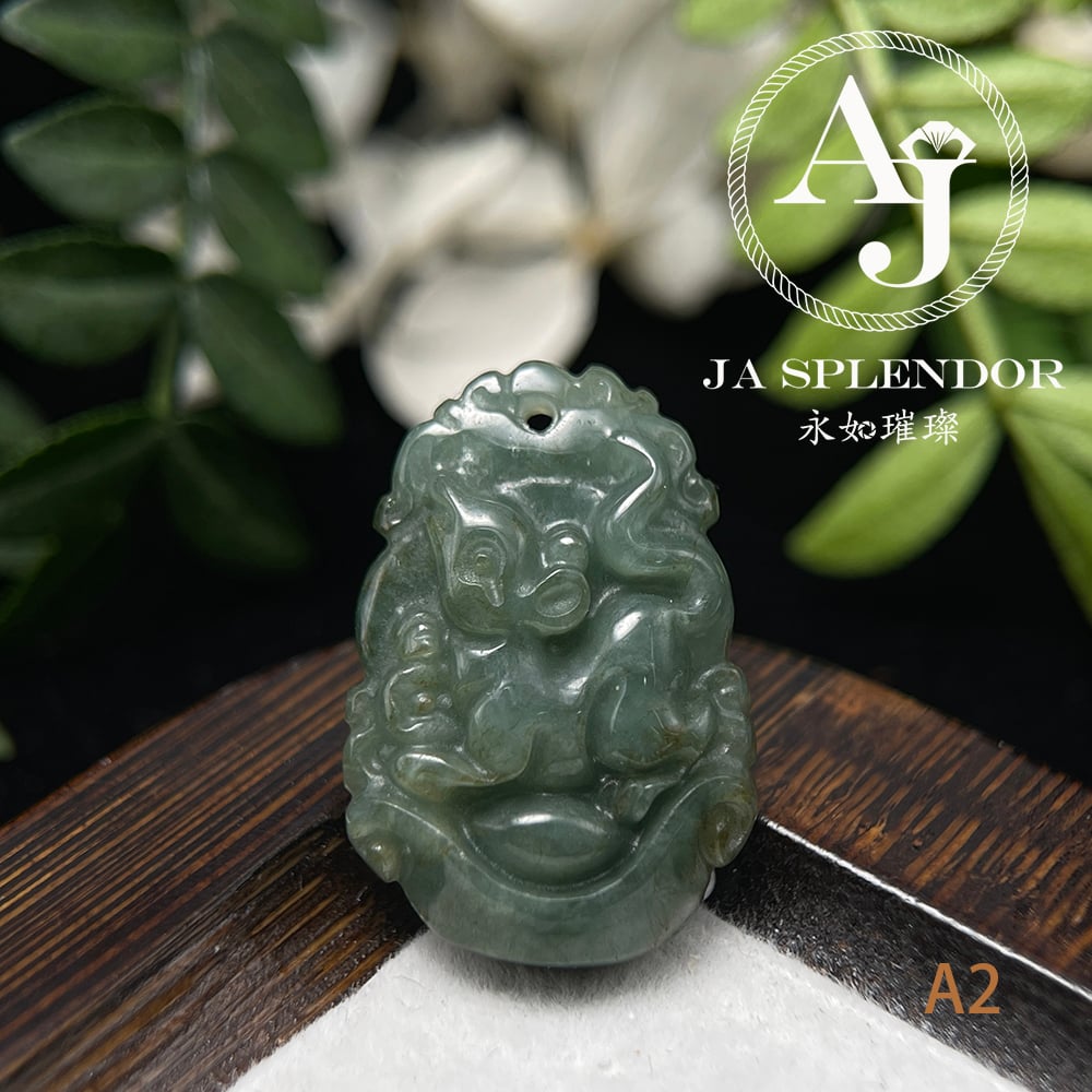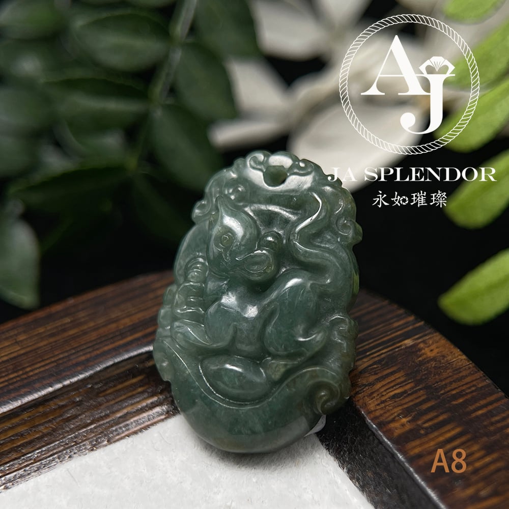 FBG25-08 天然翡翠A玉 油青種化太歲十二生肖【鼠】小吊墜