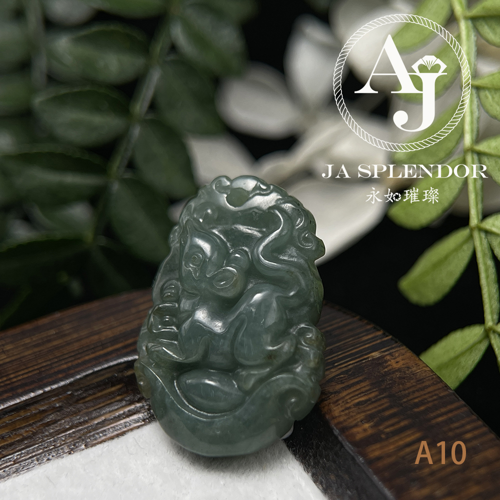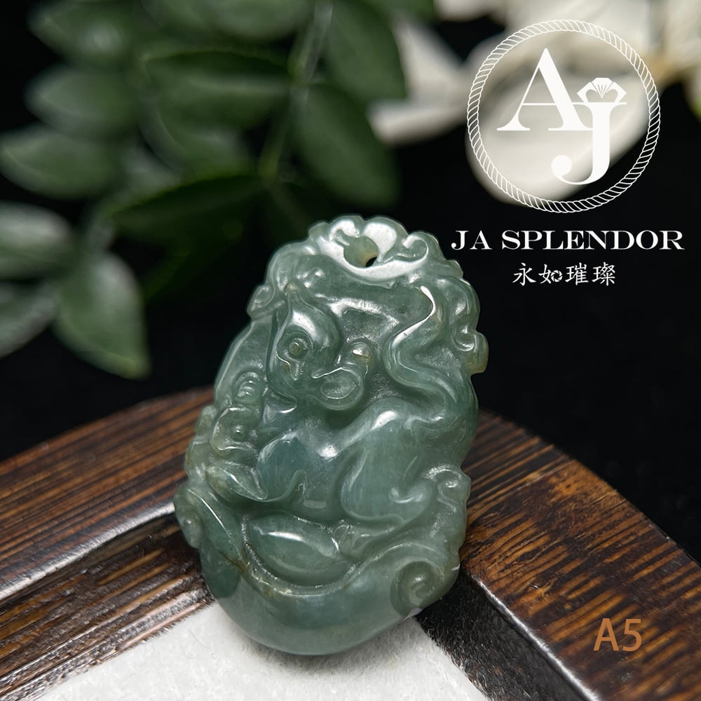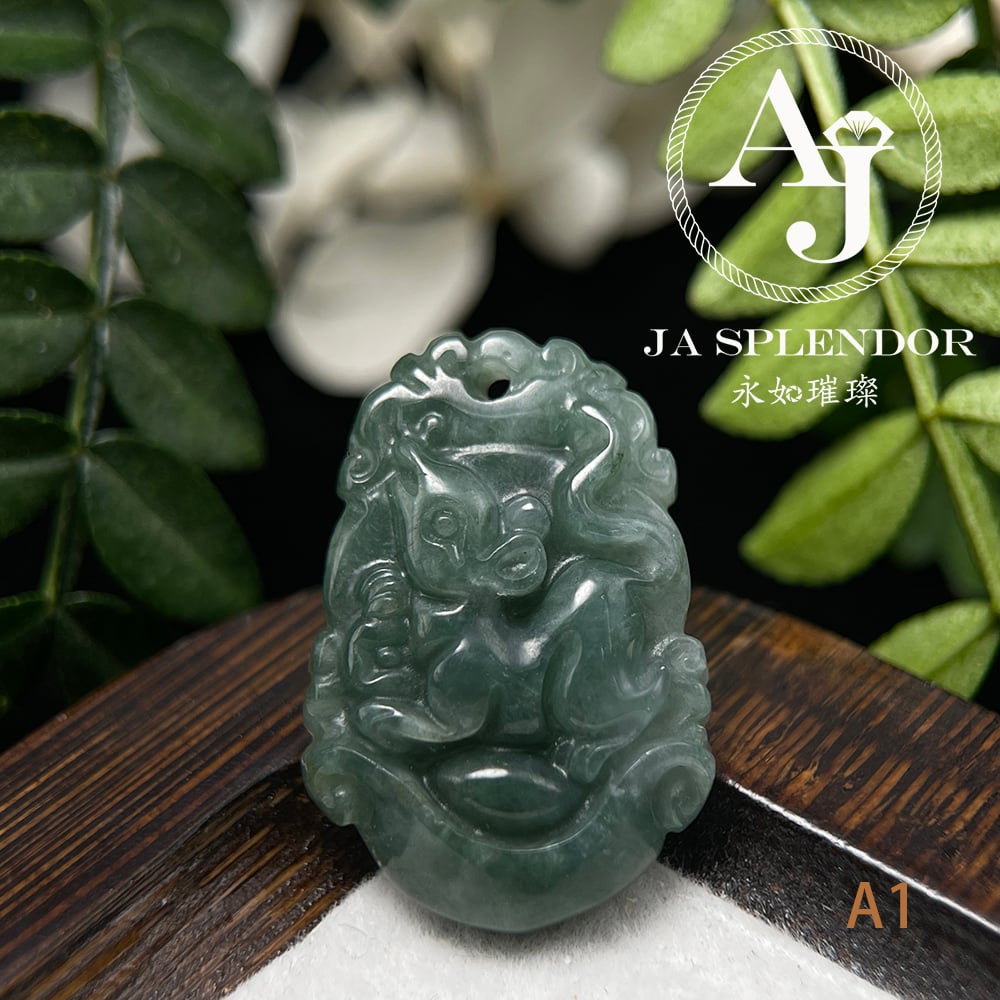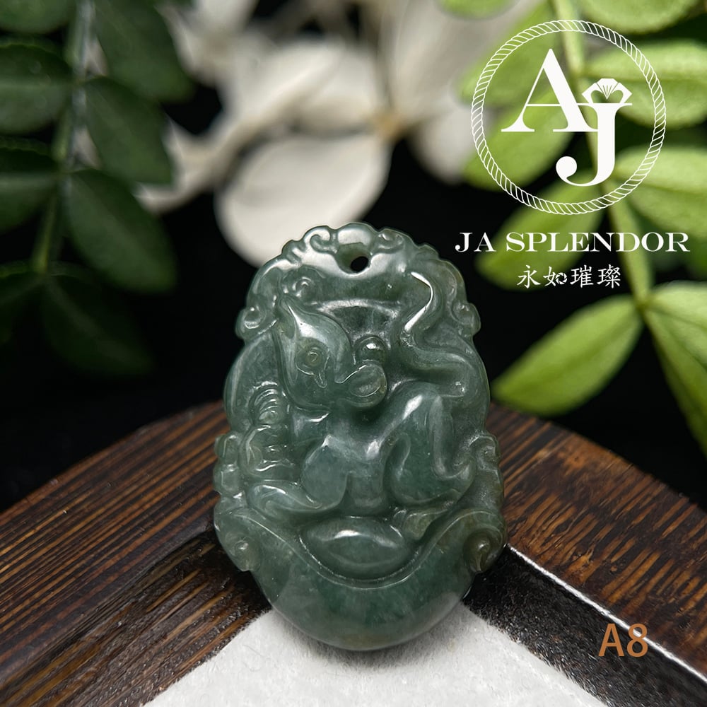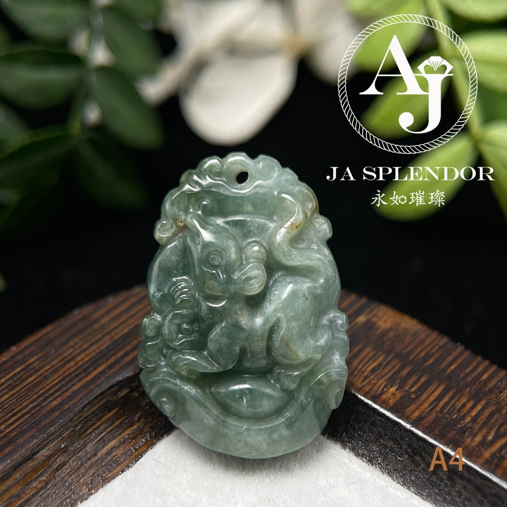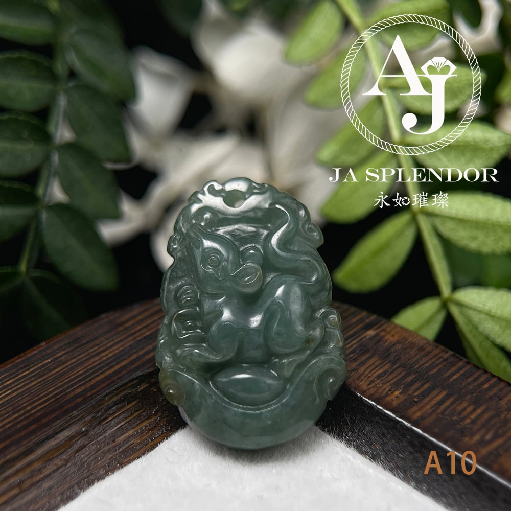 FBG25-08 天然翡翠A玉 油青種化太歲十二生肖【鼠】小吊墜