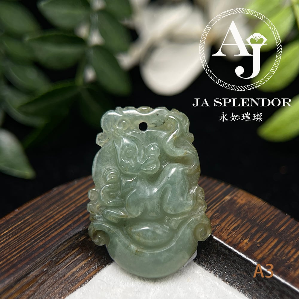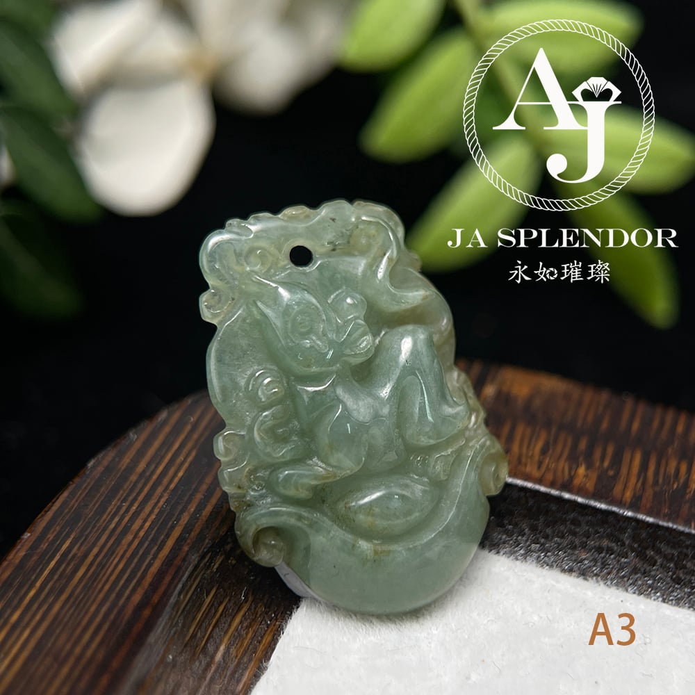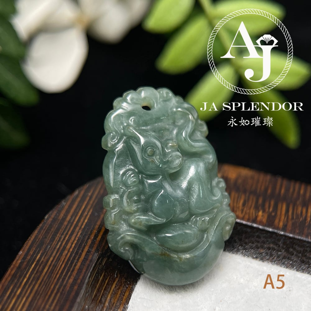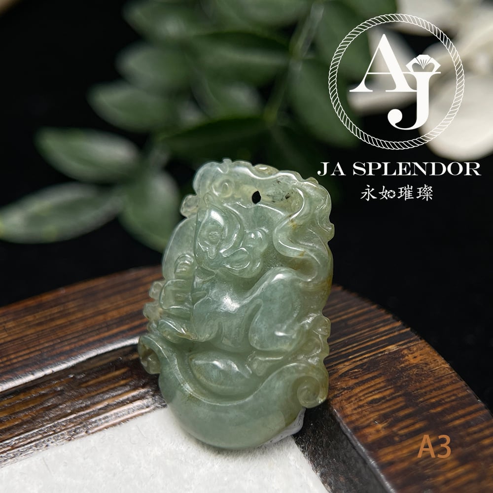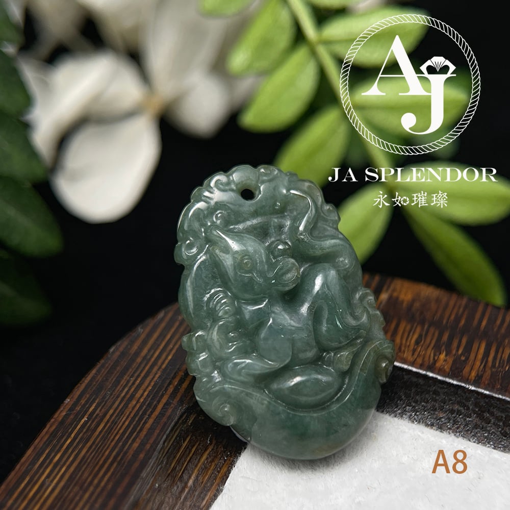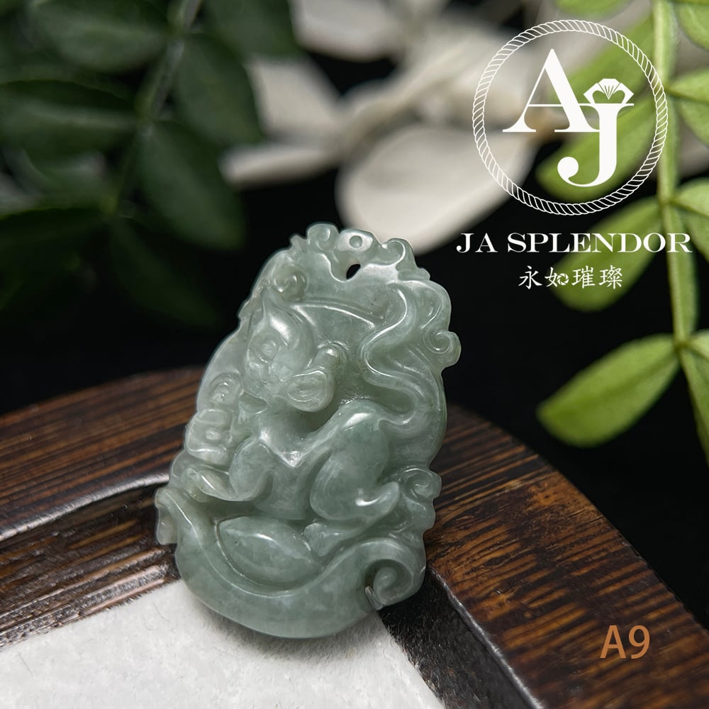 FBG25-08 天然翡翠A玉 油青種化太歲十二生肖【鼠】小吊墜