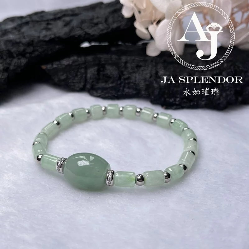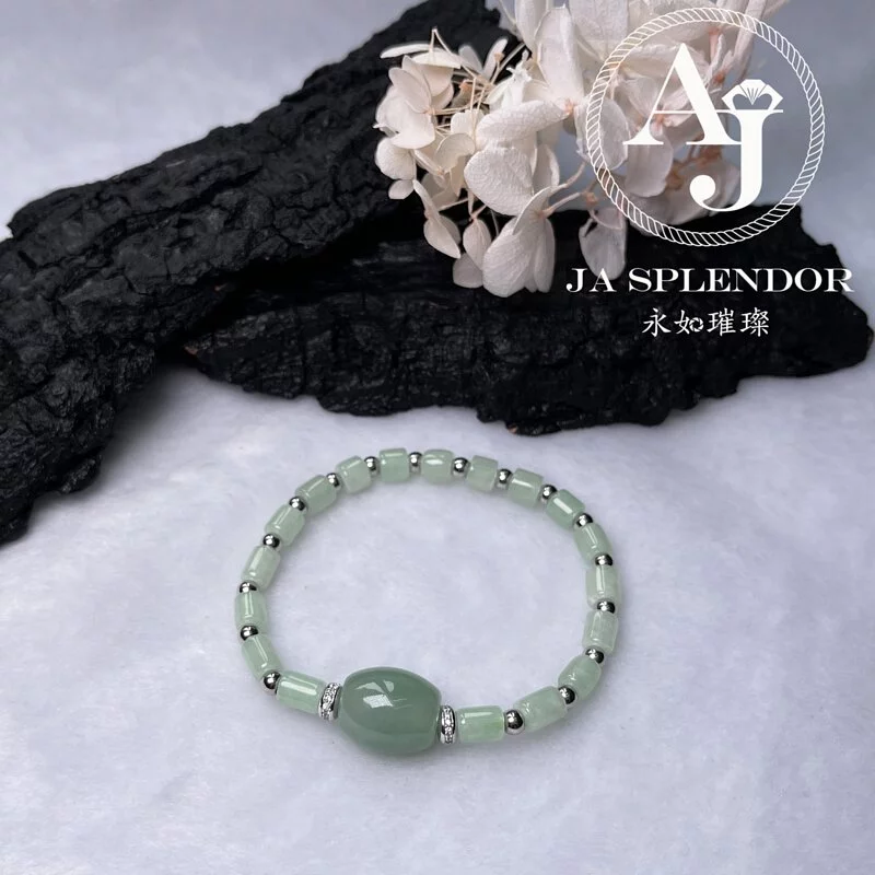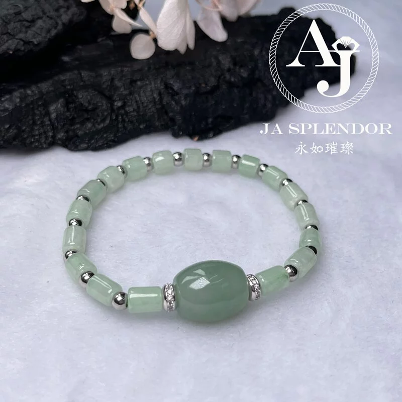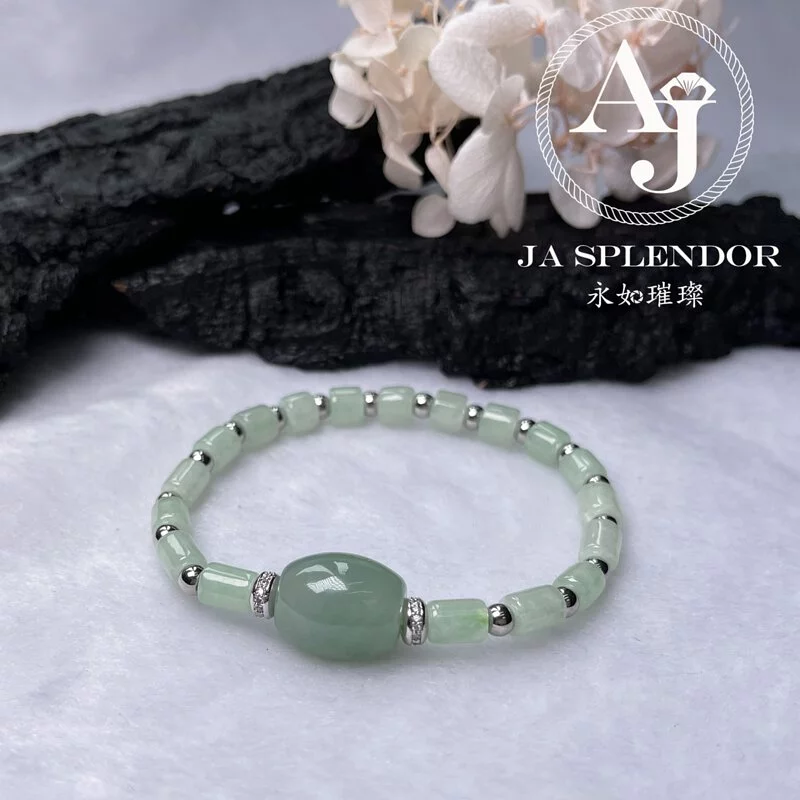JN-2235 天然翡翠A玉 冰晴綠招財順利路路通手鏈
