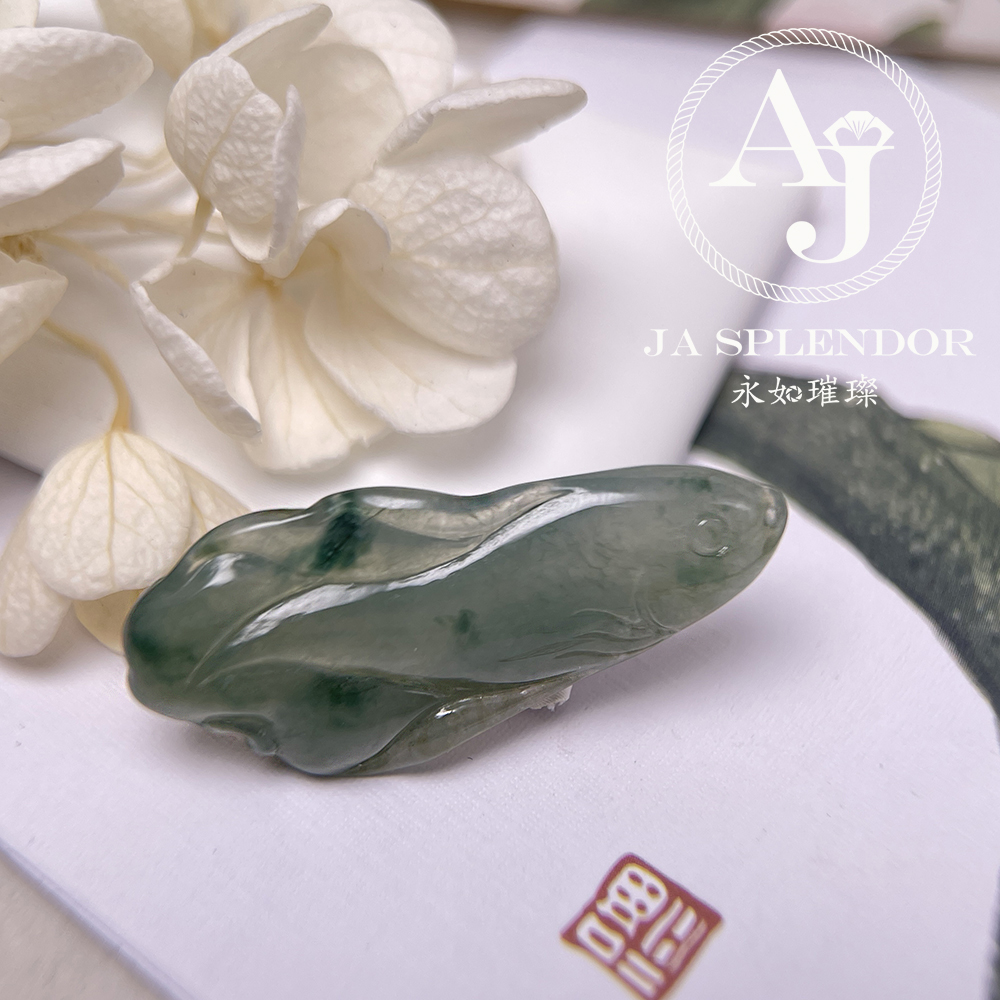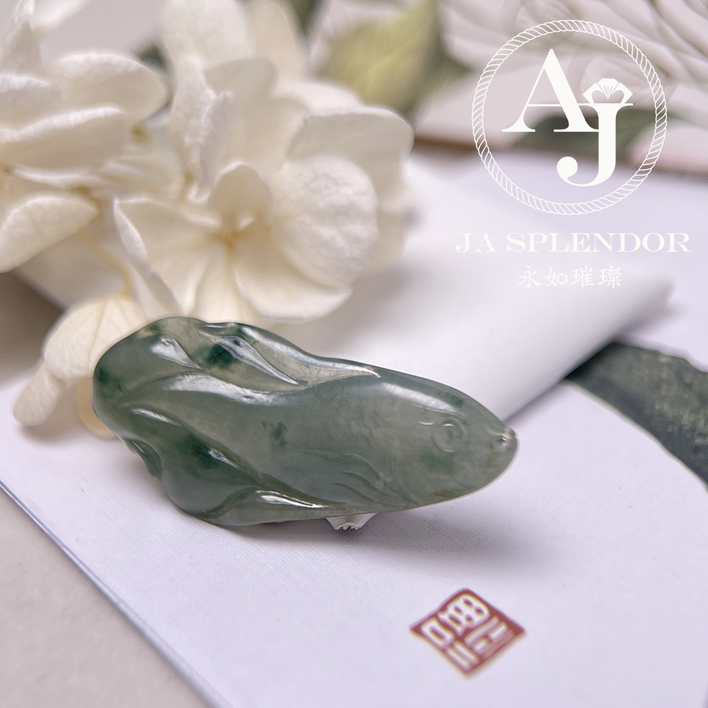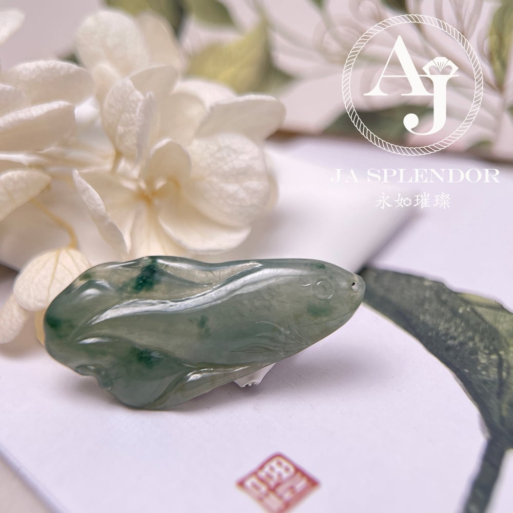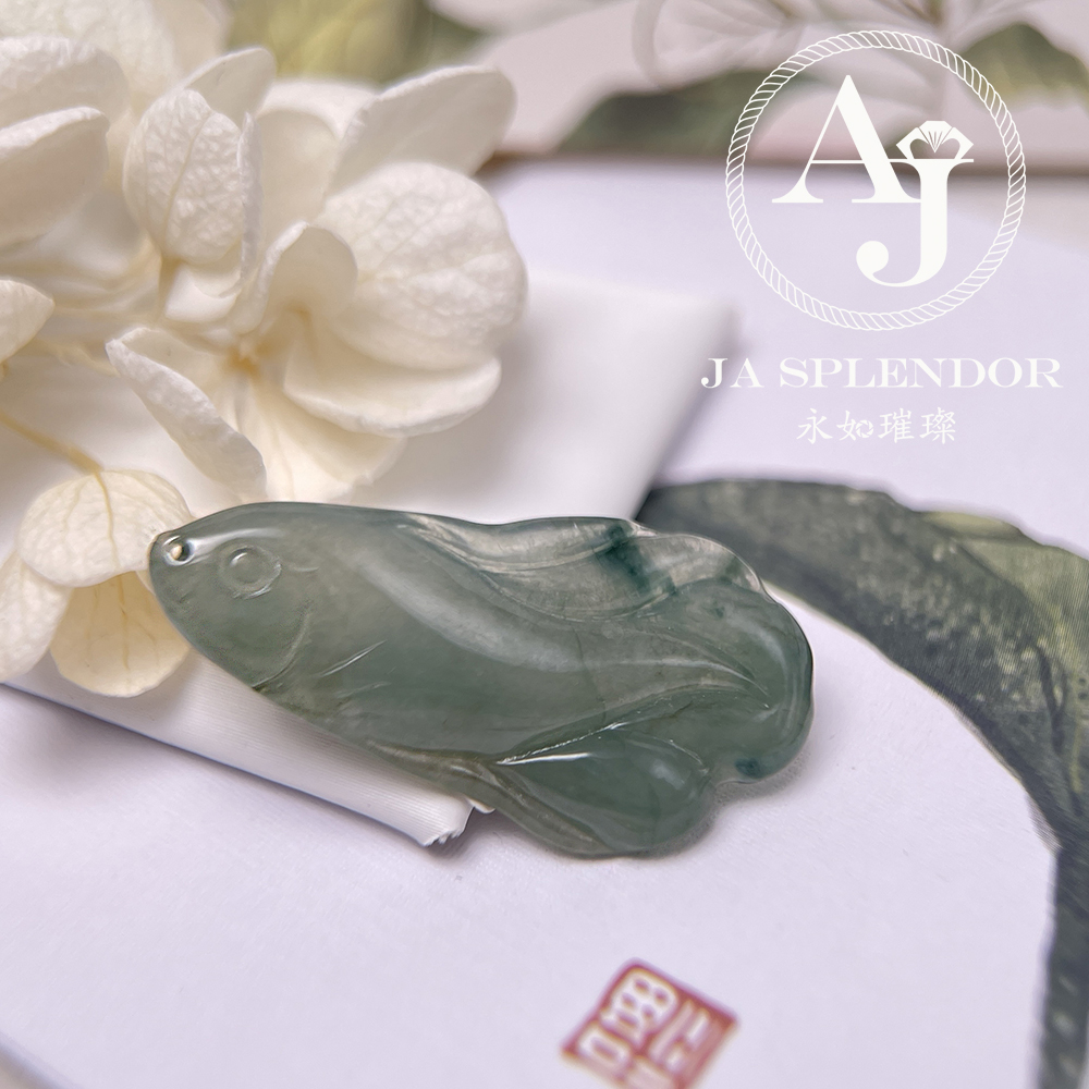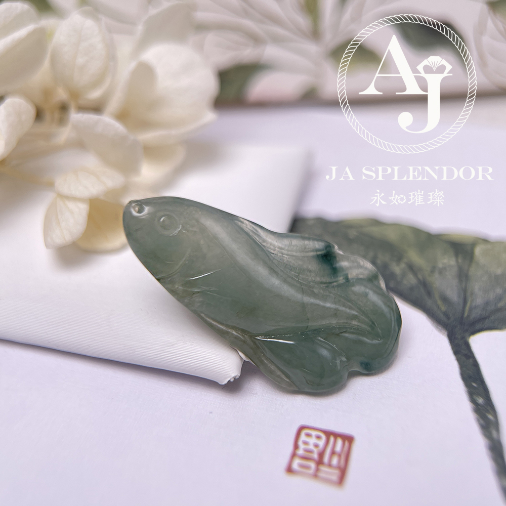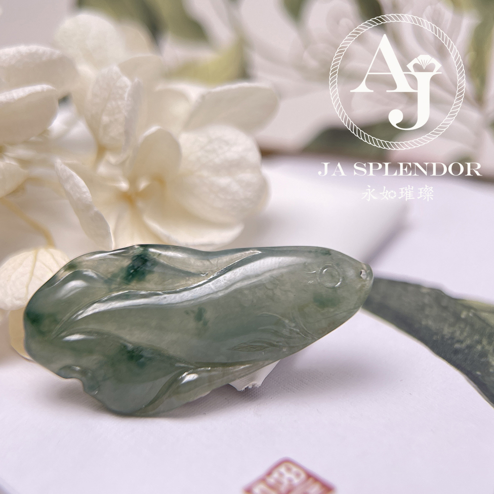 JN-741 天然翡翠A玉 冰綠飄花年年有餘吊墜