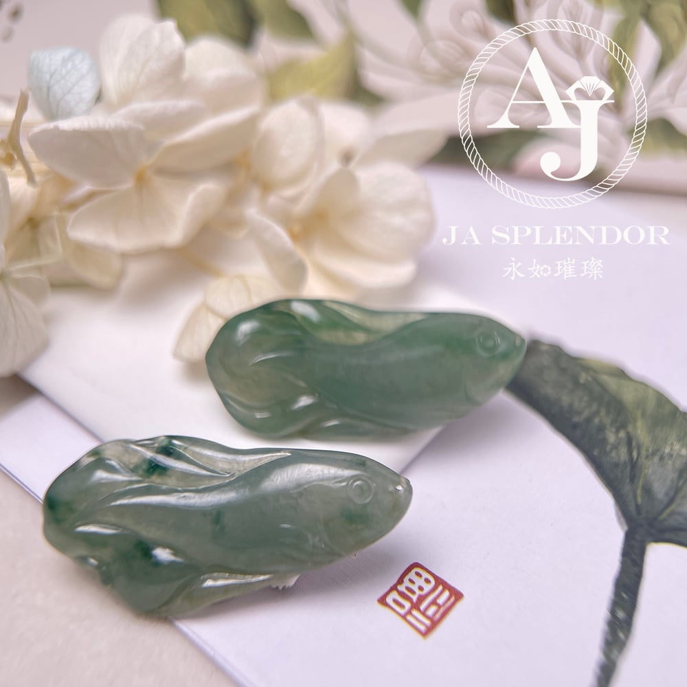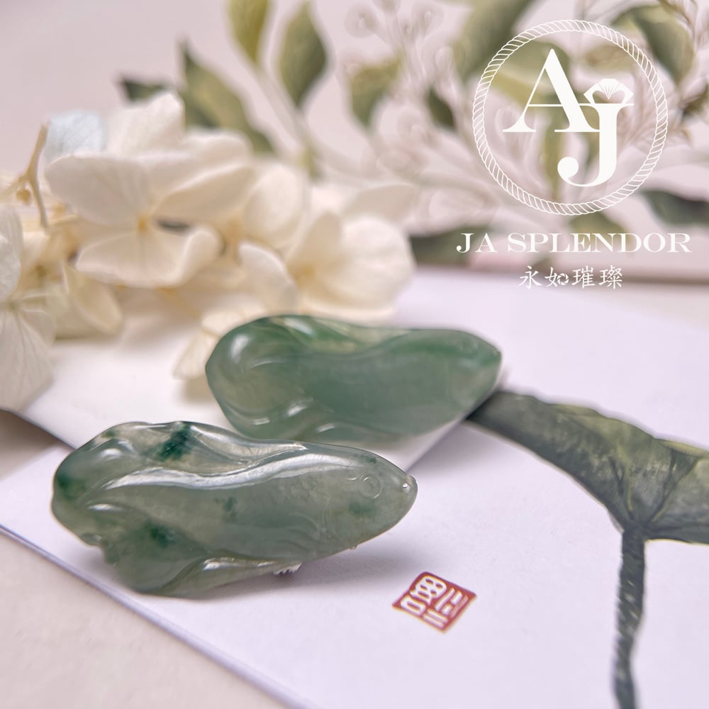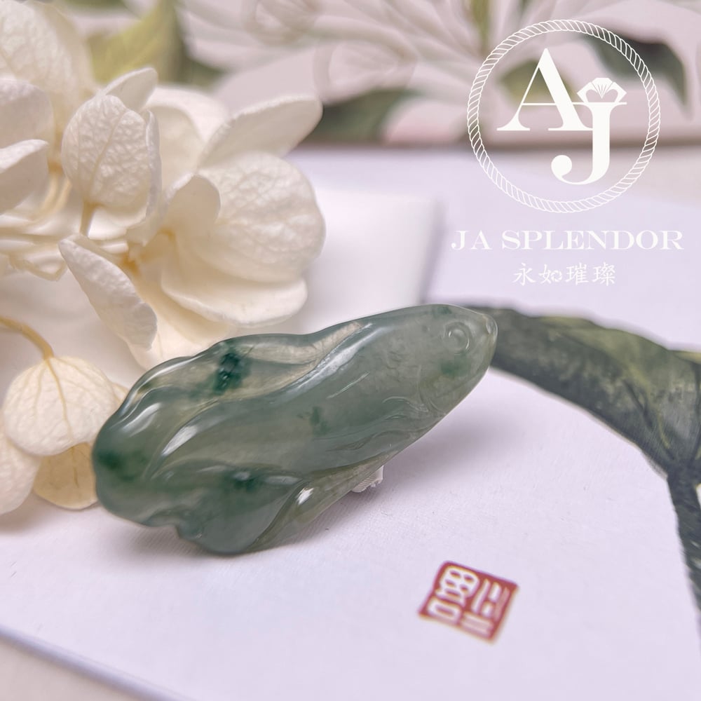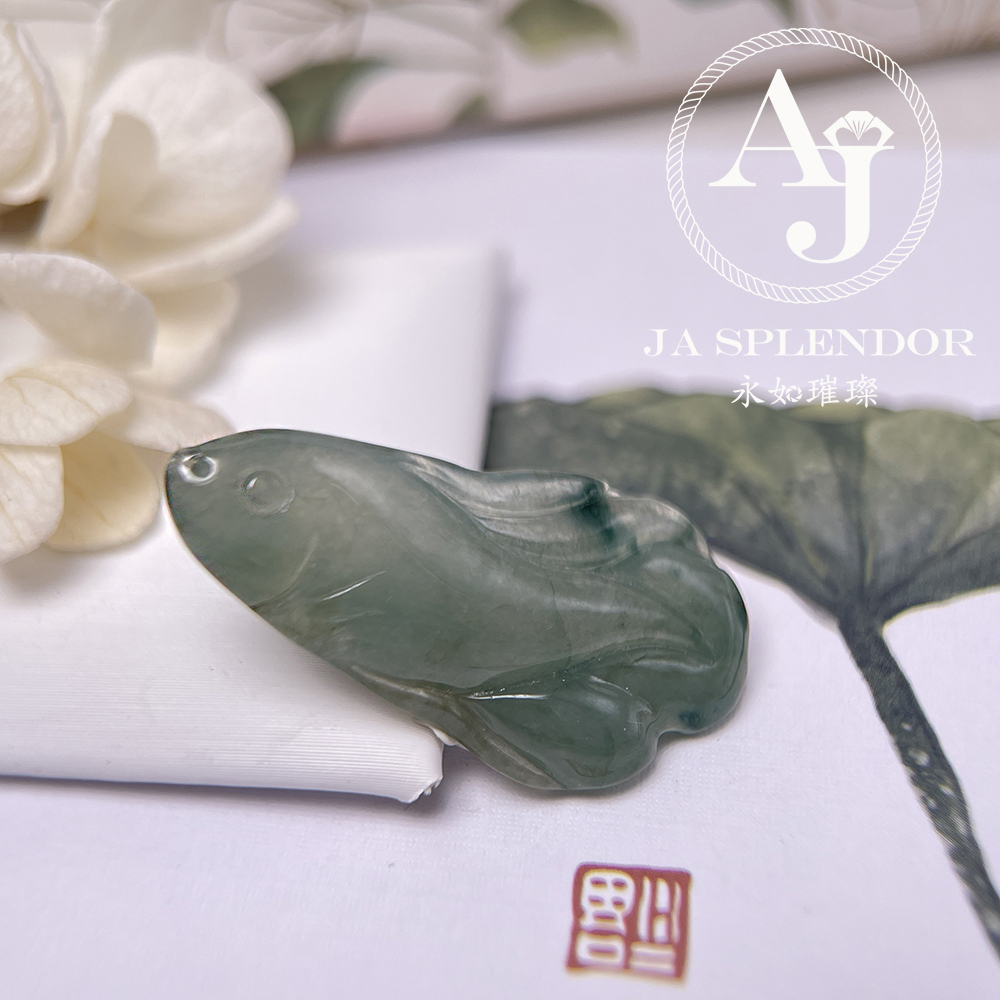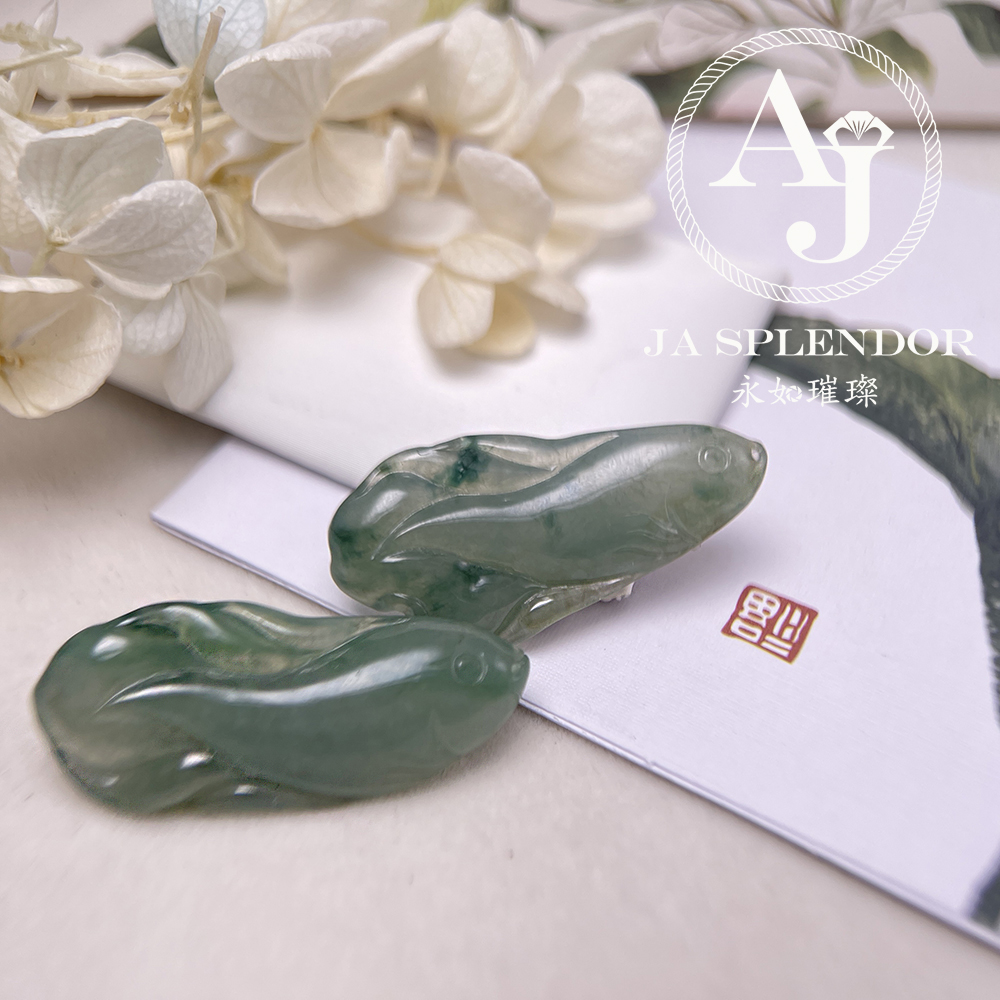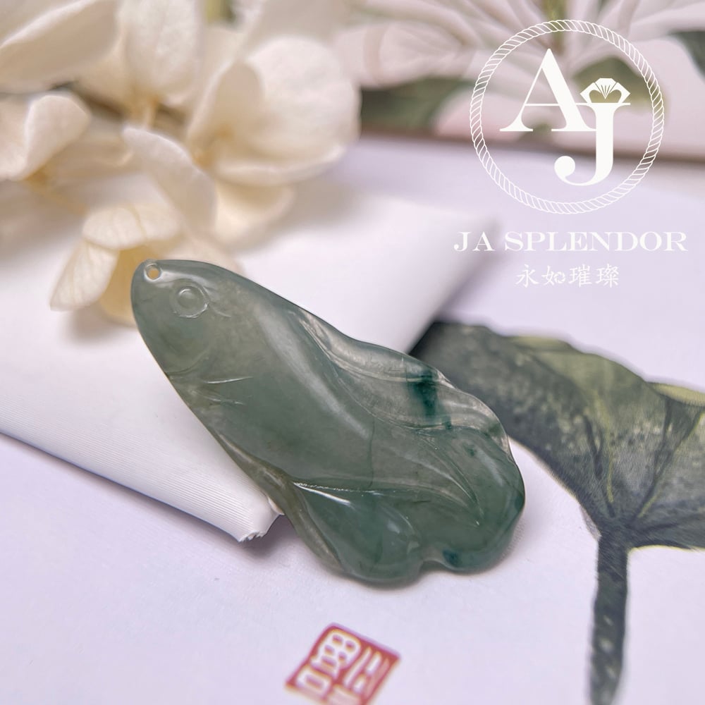JN-741 天然翡翠A玉 冰綠飄花年年有餘吊墜