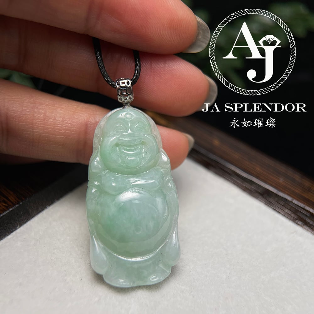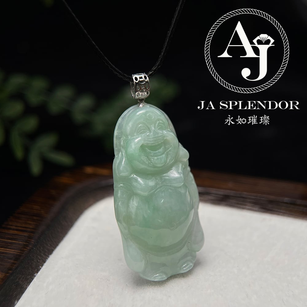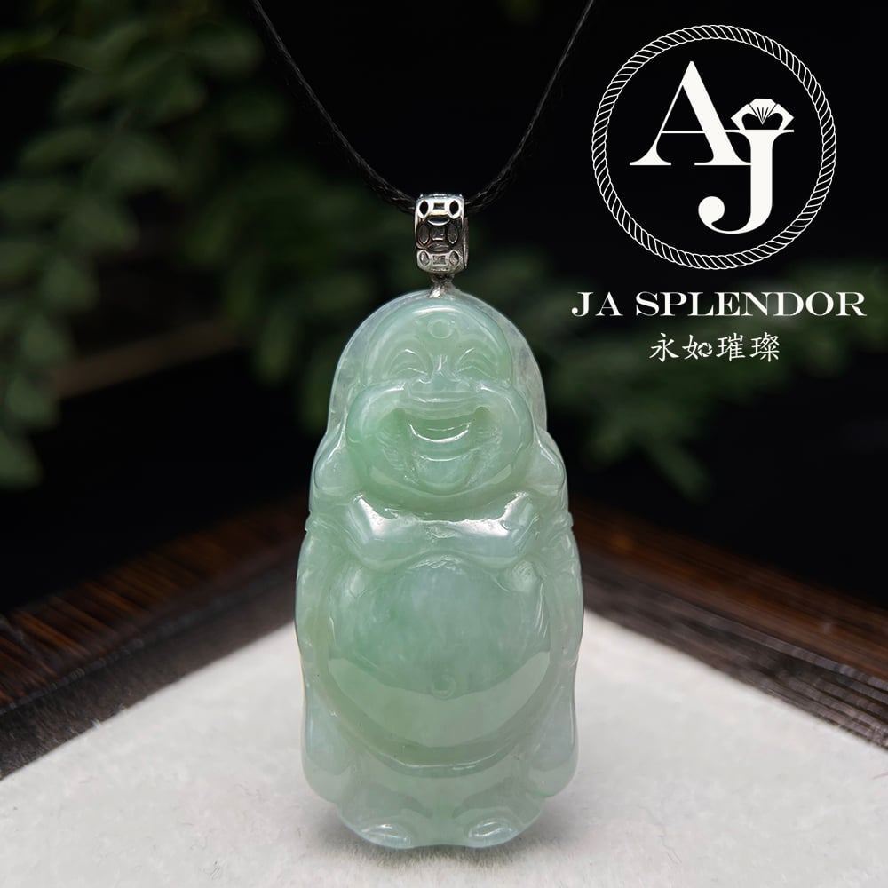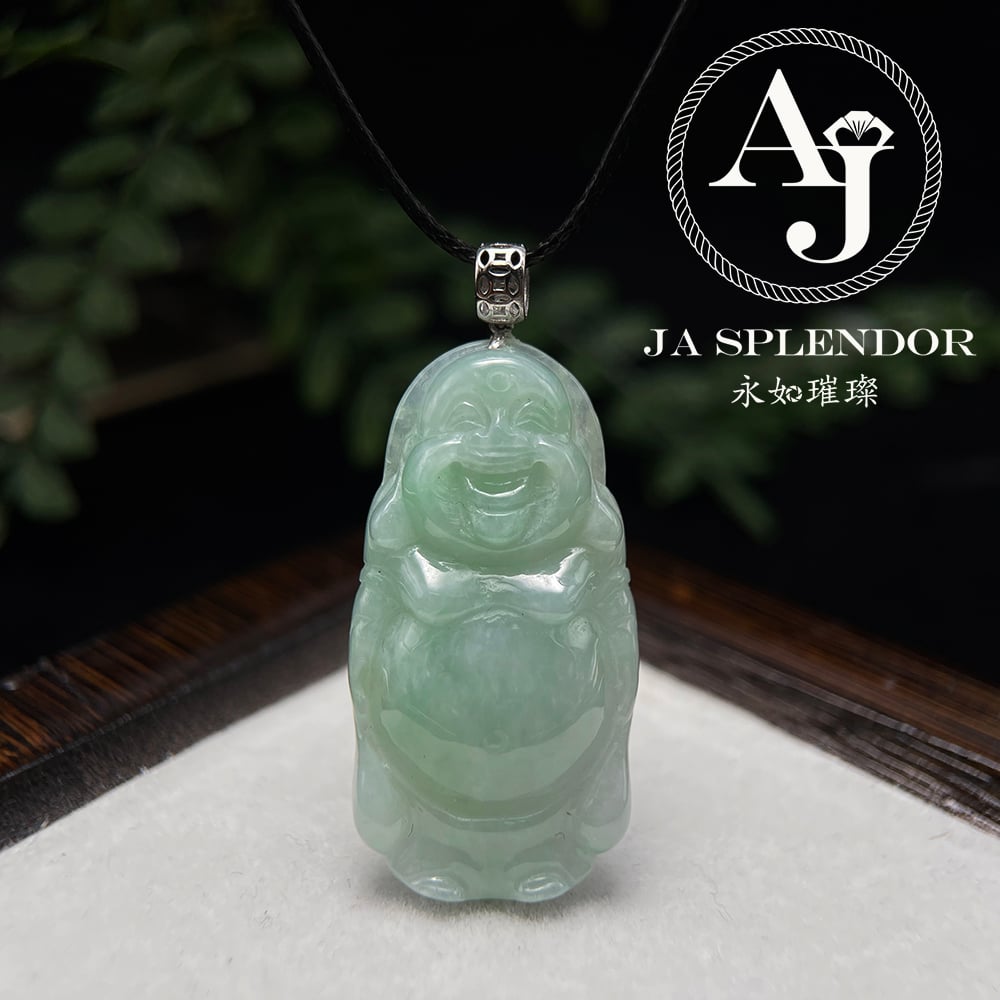 JNK-194 天然翡翠A玉 冰糯果綠笑口佛公18K吊墜