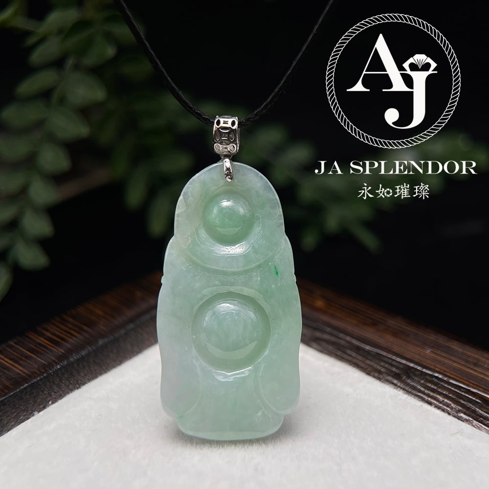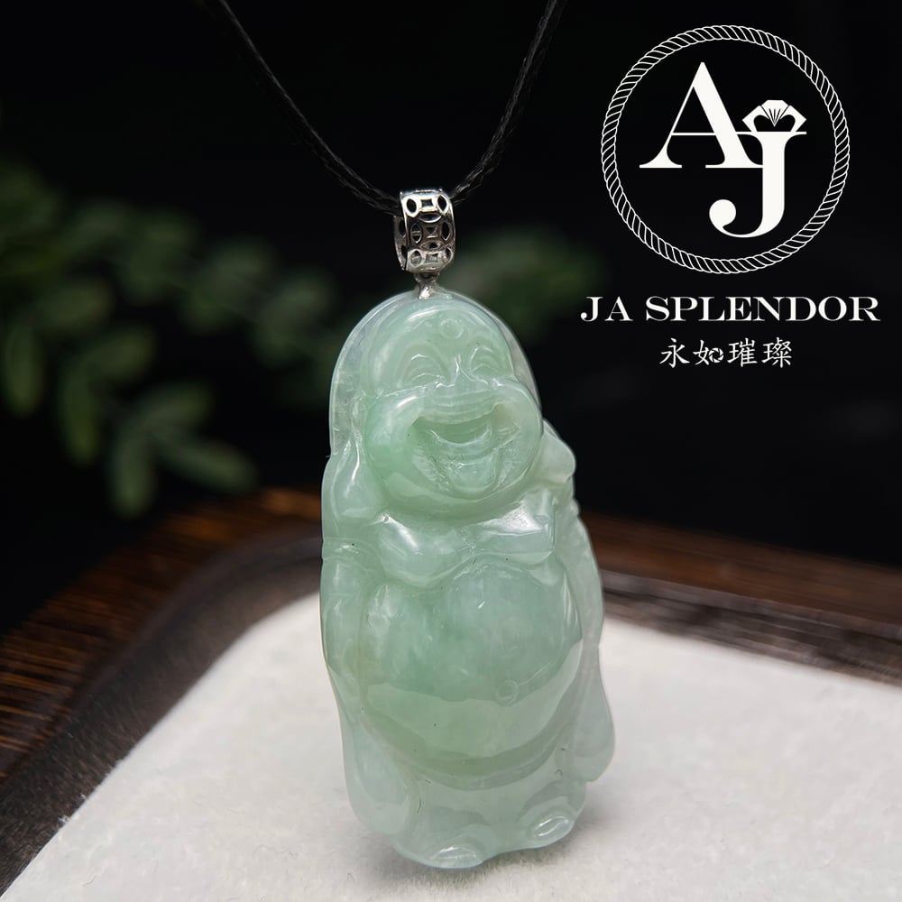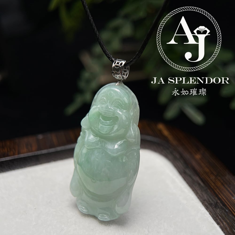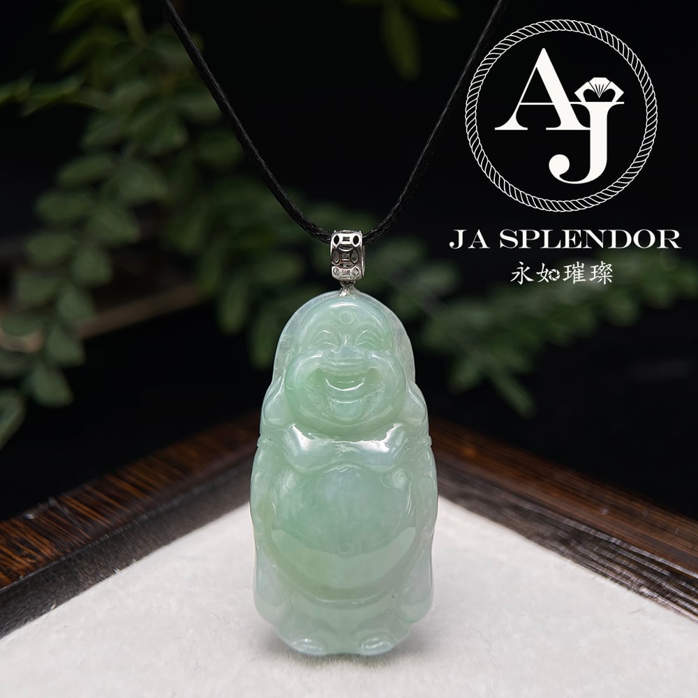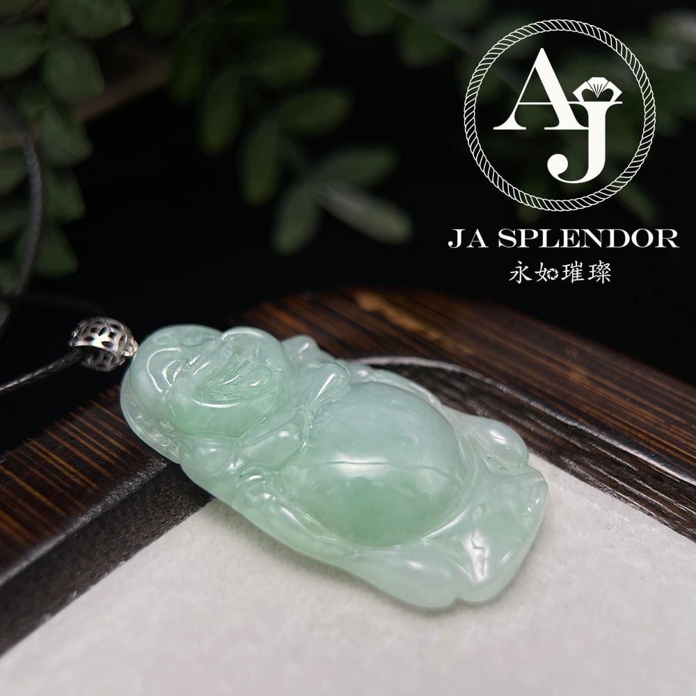 JNK-194 天然翡翠A玉 冰糯果綠笑口佛公18K吊墜