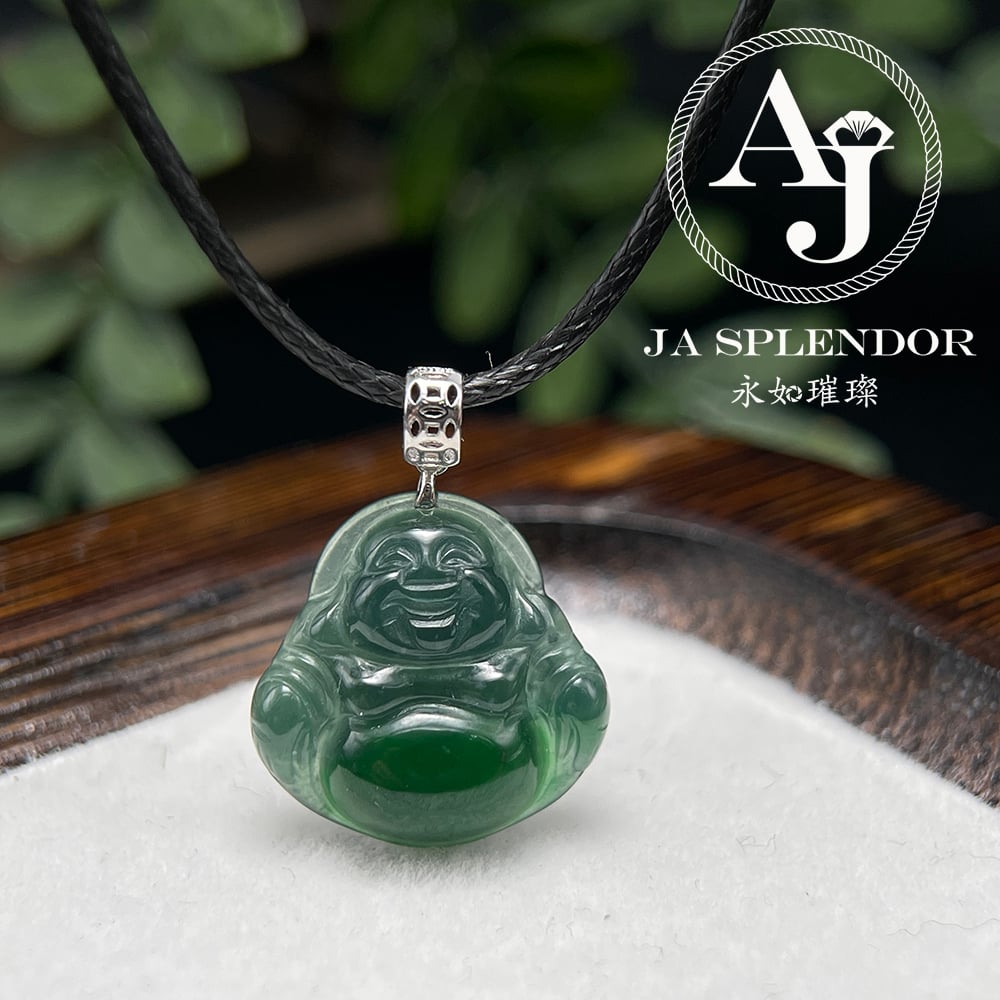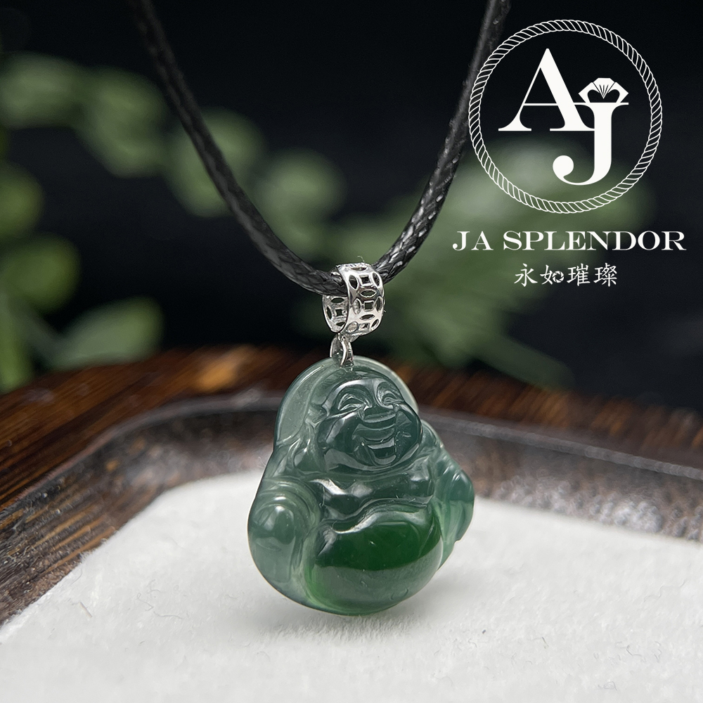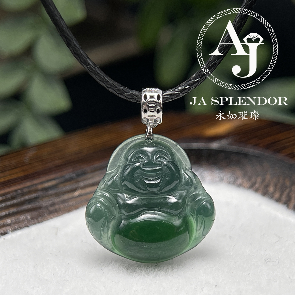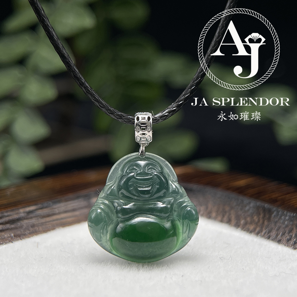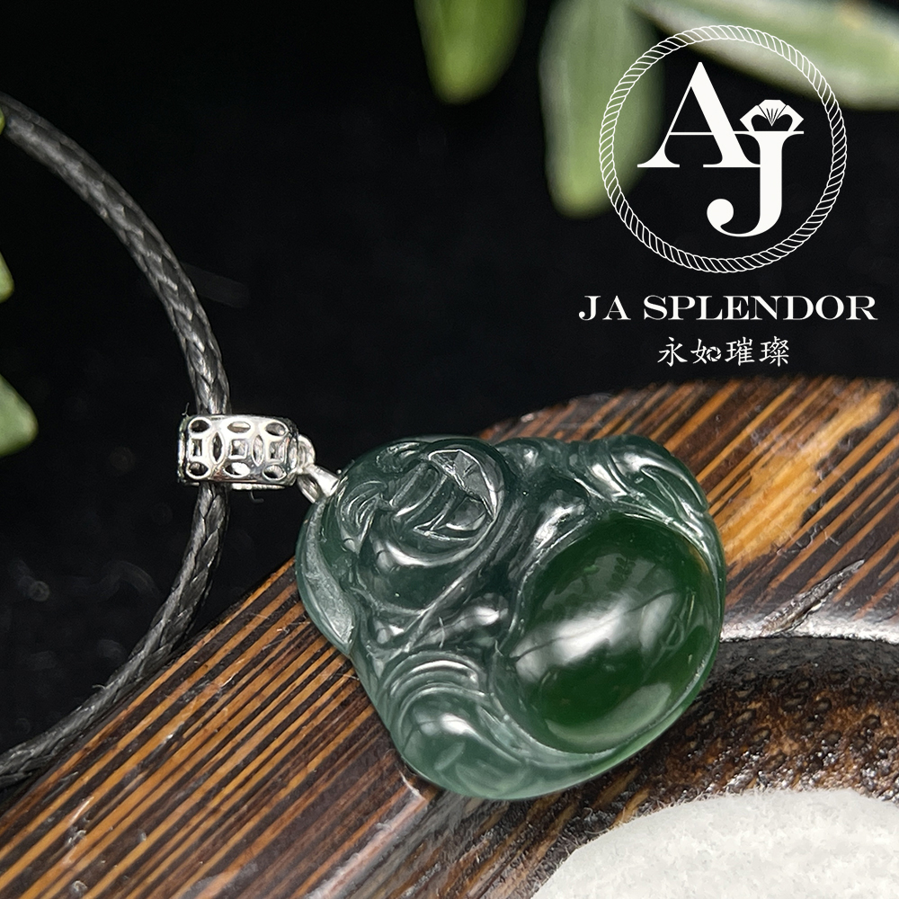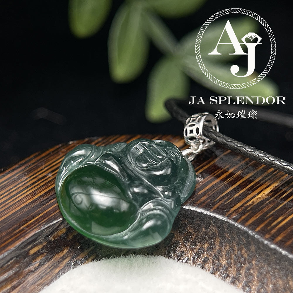 JNK-294 天然翡翠A玉 冰種老藍水福氣笑口小佛公18K金吊墜