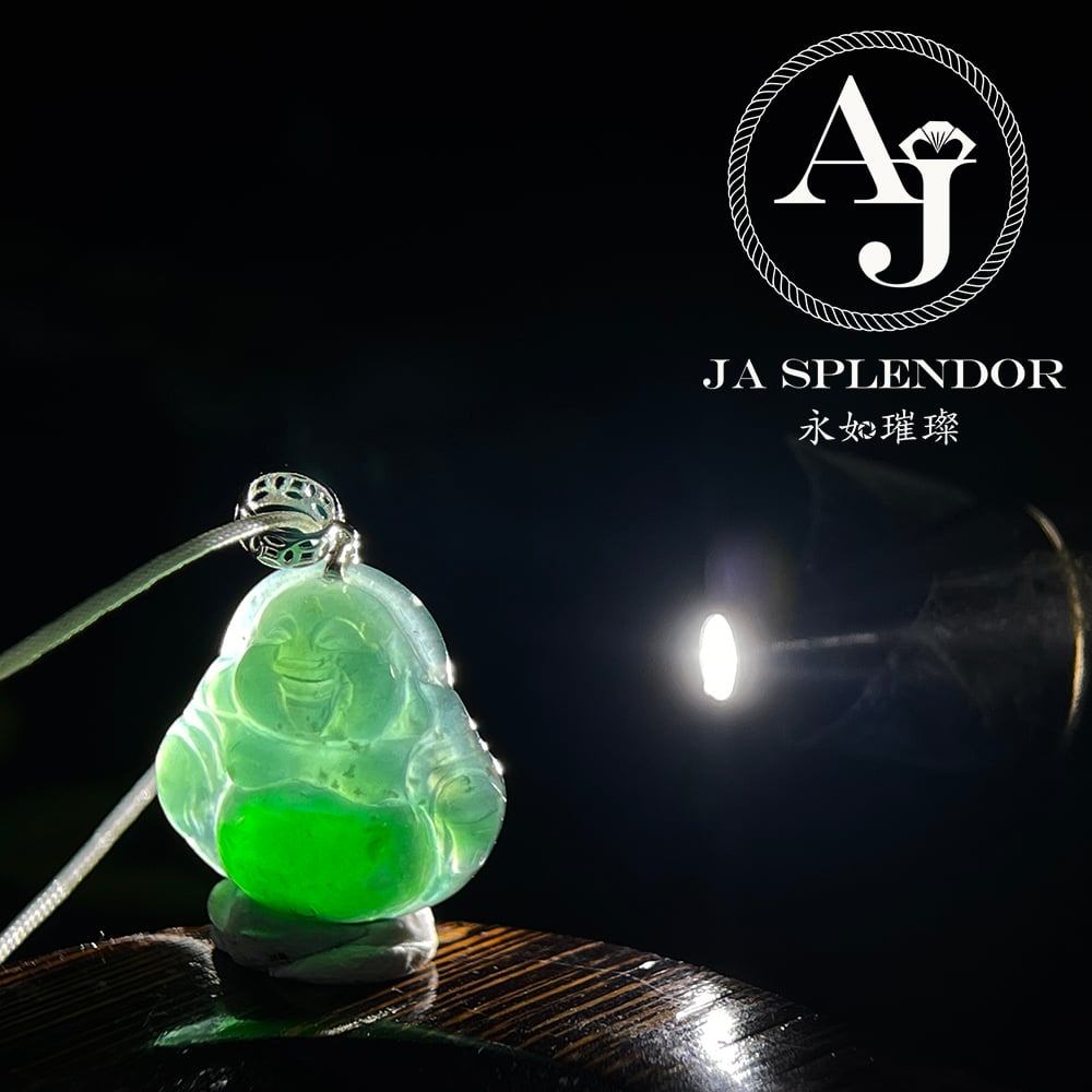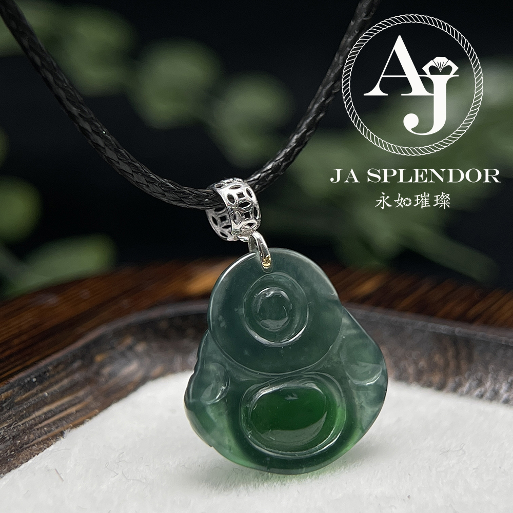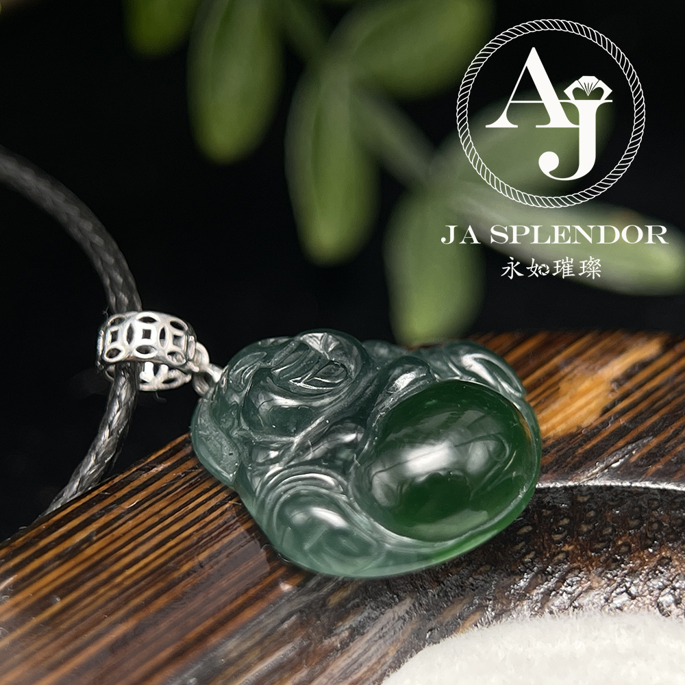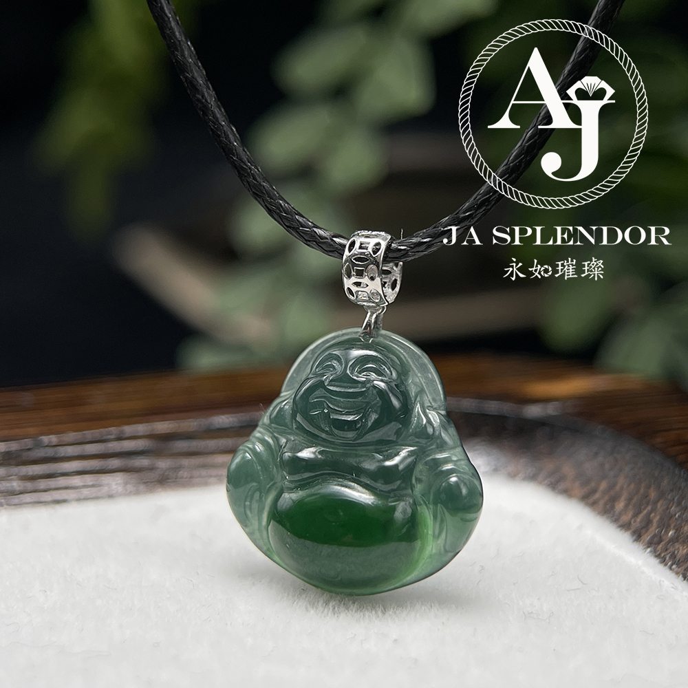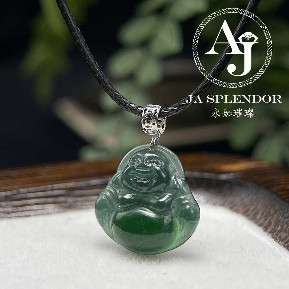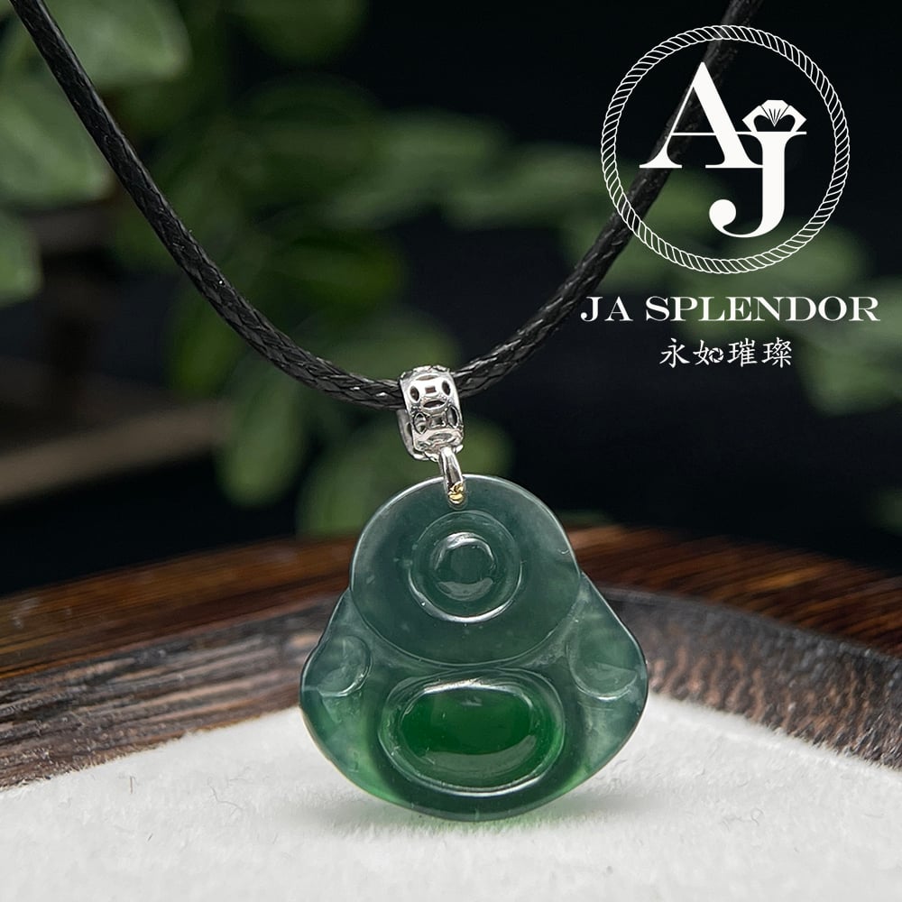 JNK-294 天然翡翠A玉 冰種老藍水福氣笑口小佛公18K金吊墜
