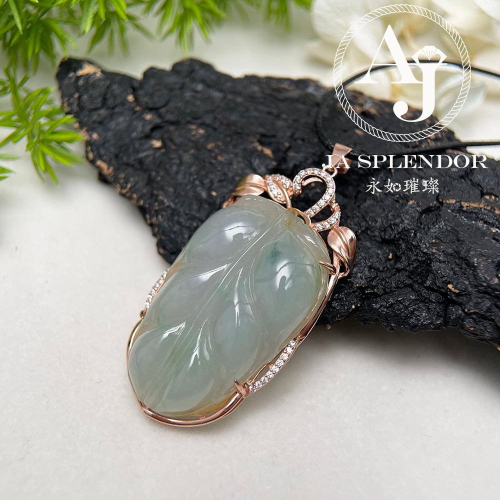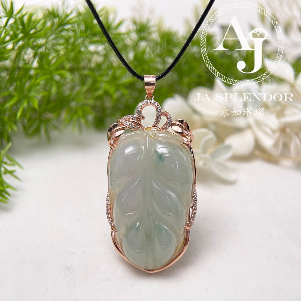 大業有成—在中國漢字中"葉"諧 音"業",形容事業有成,步步高昇。佩戴玉葉,能塑造成功人士沉著穩重的形象,表現大氣豪邁的氣質。