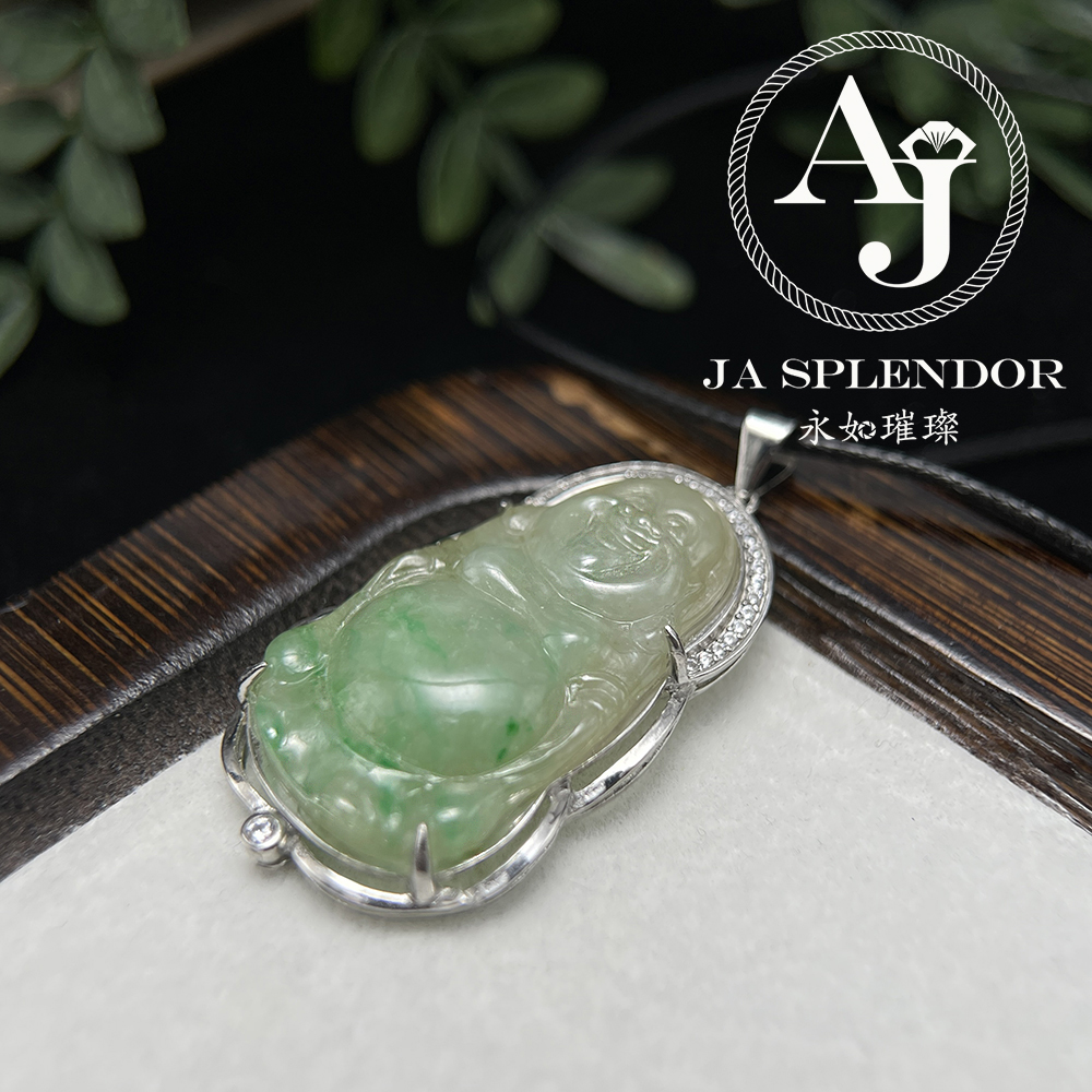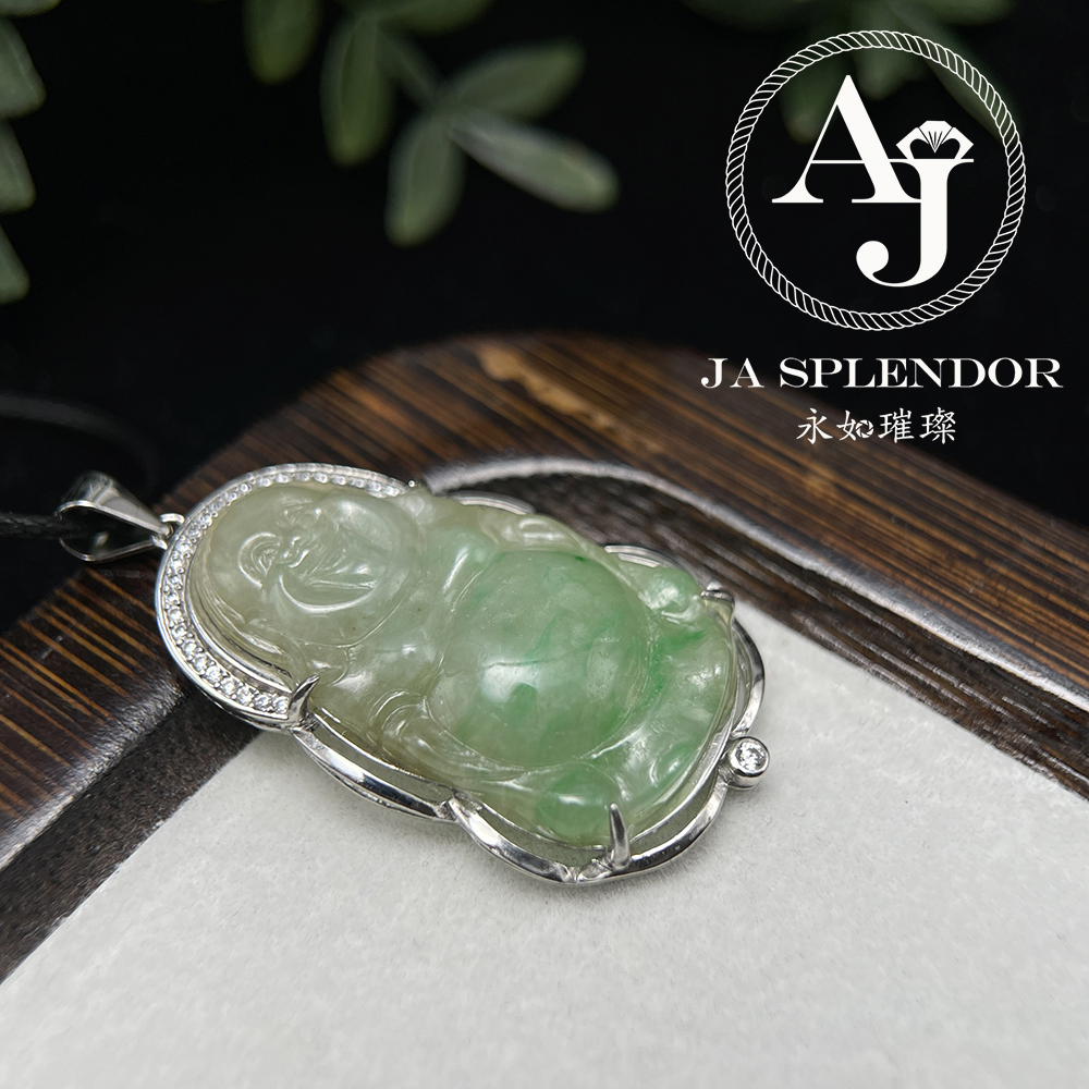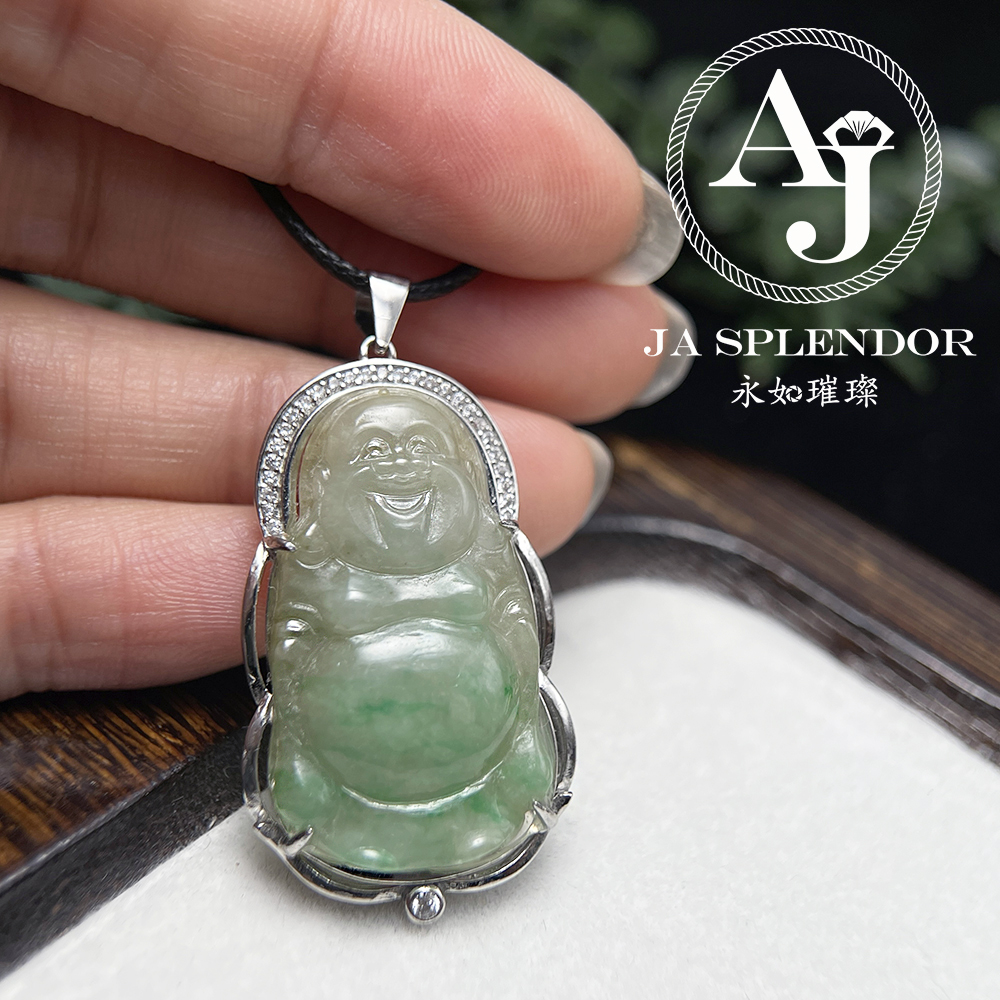 JNS-71 天然翡翠A玉 冰糯陽綠笑口常開大肚佛公