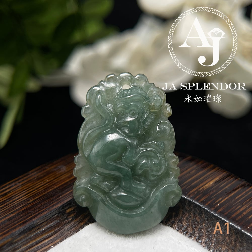 FBG25-08 天然翡翠A玉 糯冰油青種化太歲十二生肖【猴】小吊墜