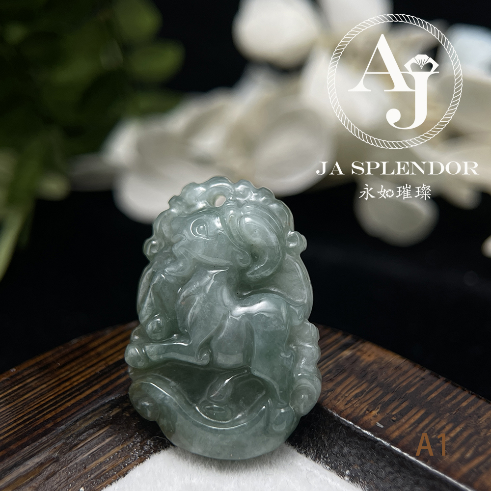 FBG25-08 天然翡翠A玉 糯冰油青種化太歲十二生肖【羊】小吊墜