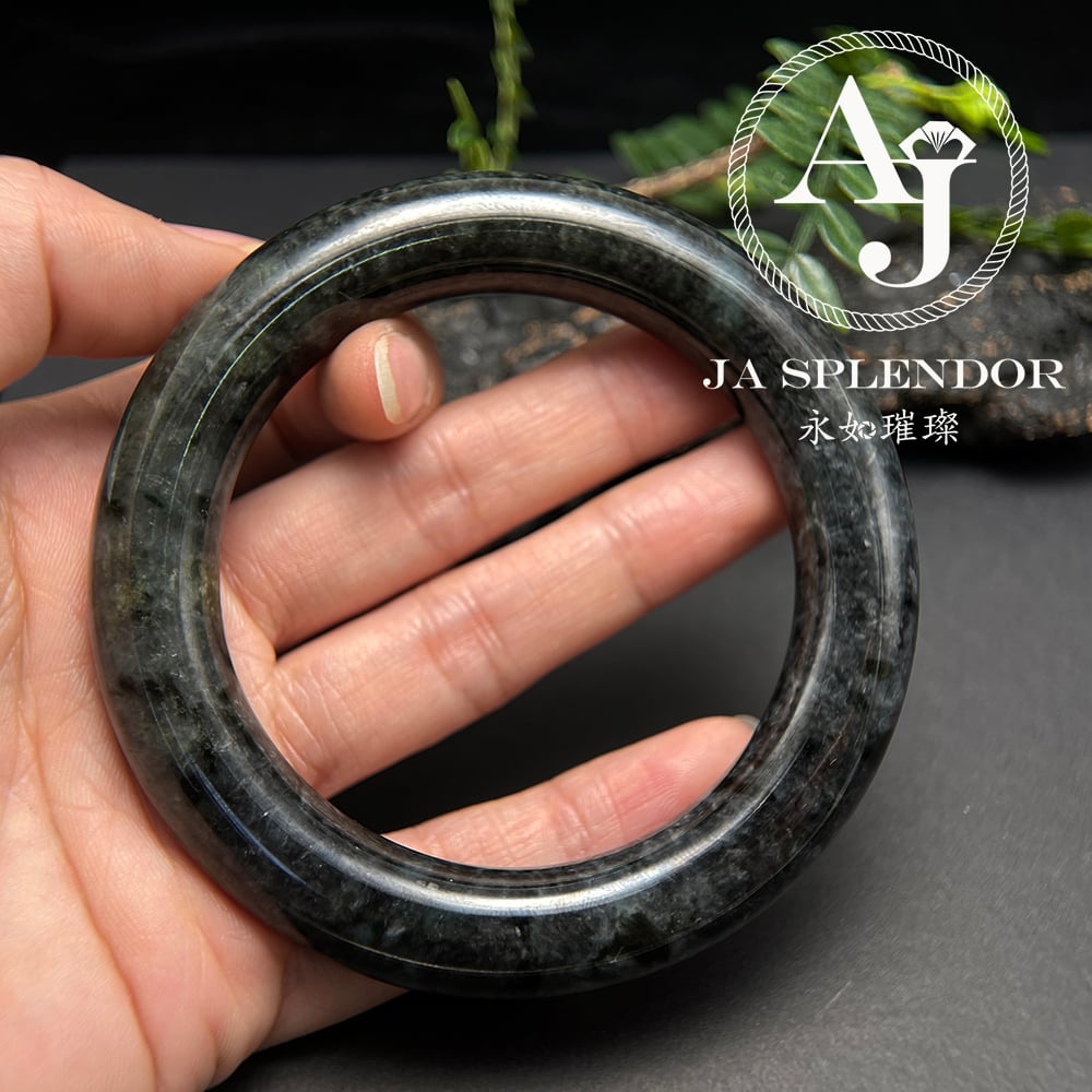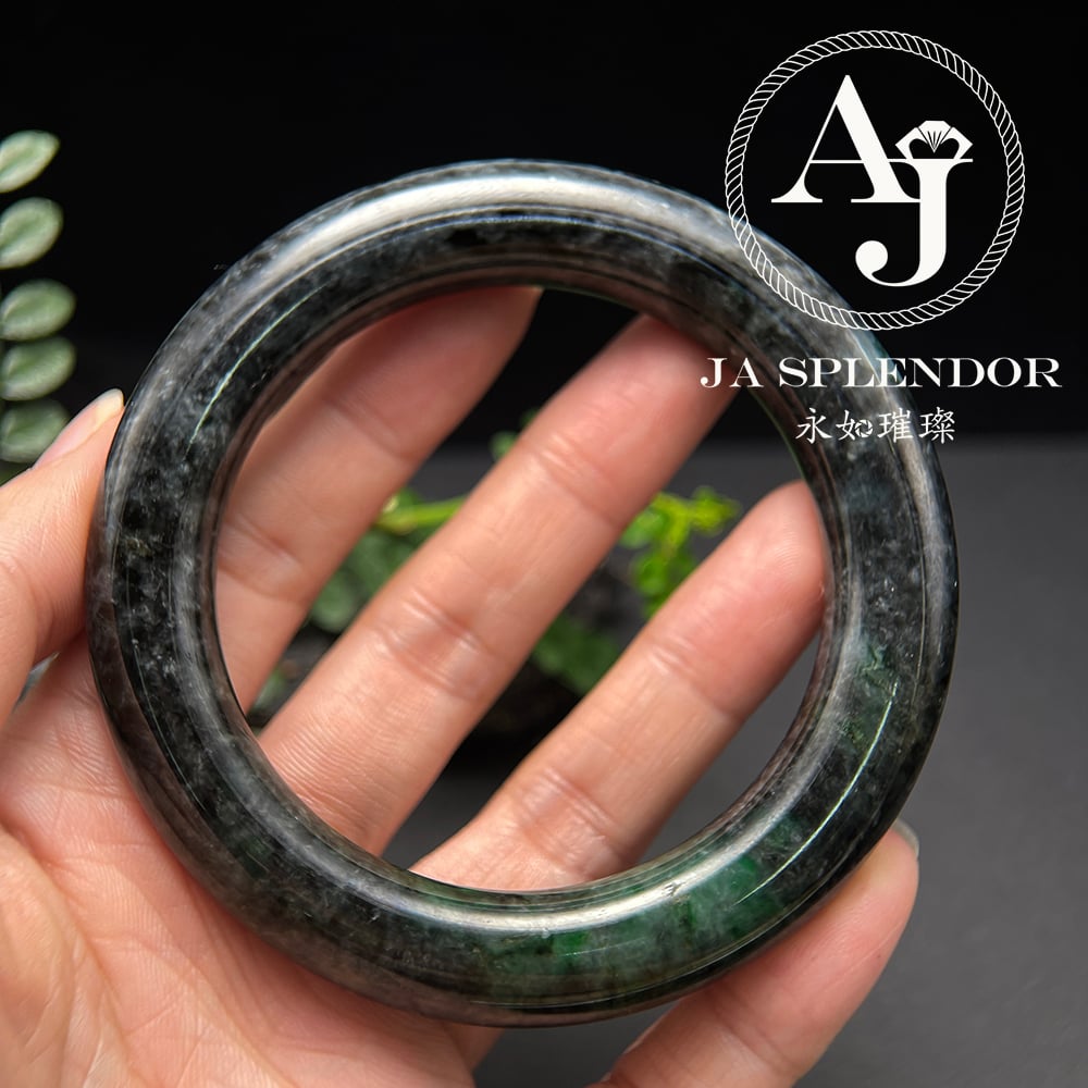 JB-250 天然翡翠A玉 烏鷄圓條手鐲(59圈)