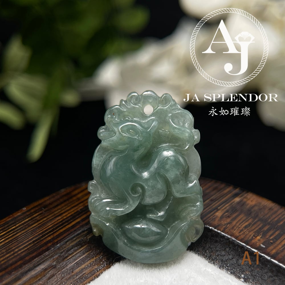 FBG25-08 天然翡翠A玉 糯冰油青種化太歲十二生肖【狗】小吊墜