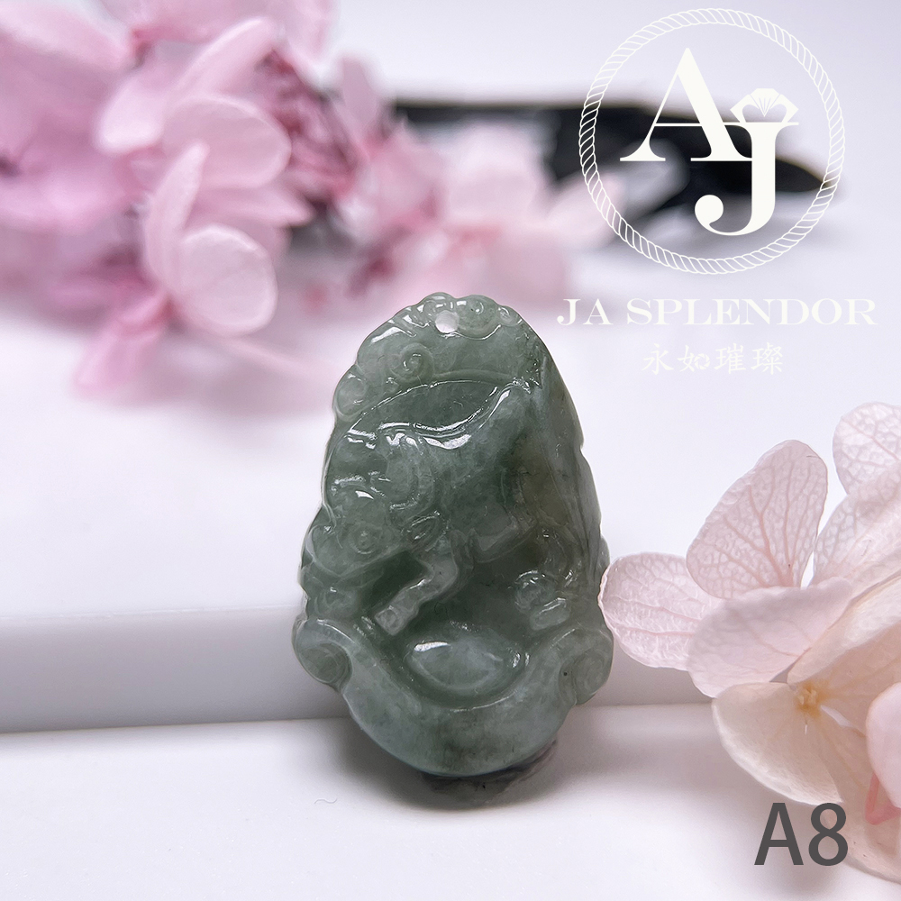FBG-06 天然翡翠A玉 糯冰綠化太歲十二生肖【牛】吊牌
