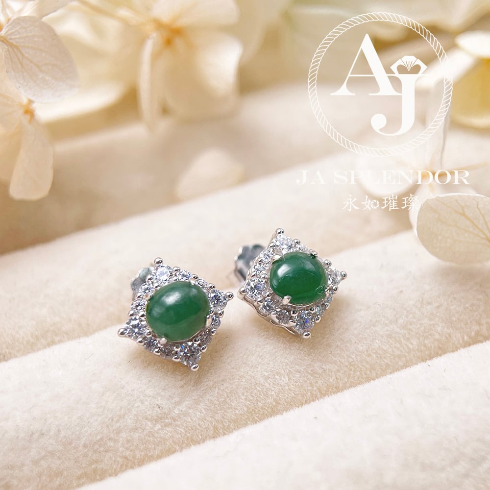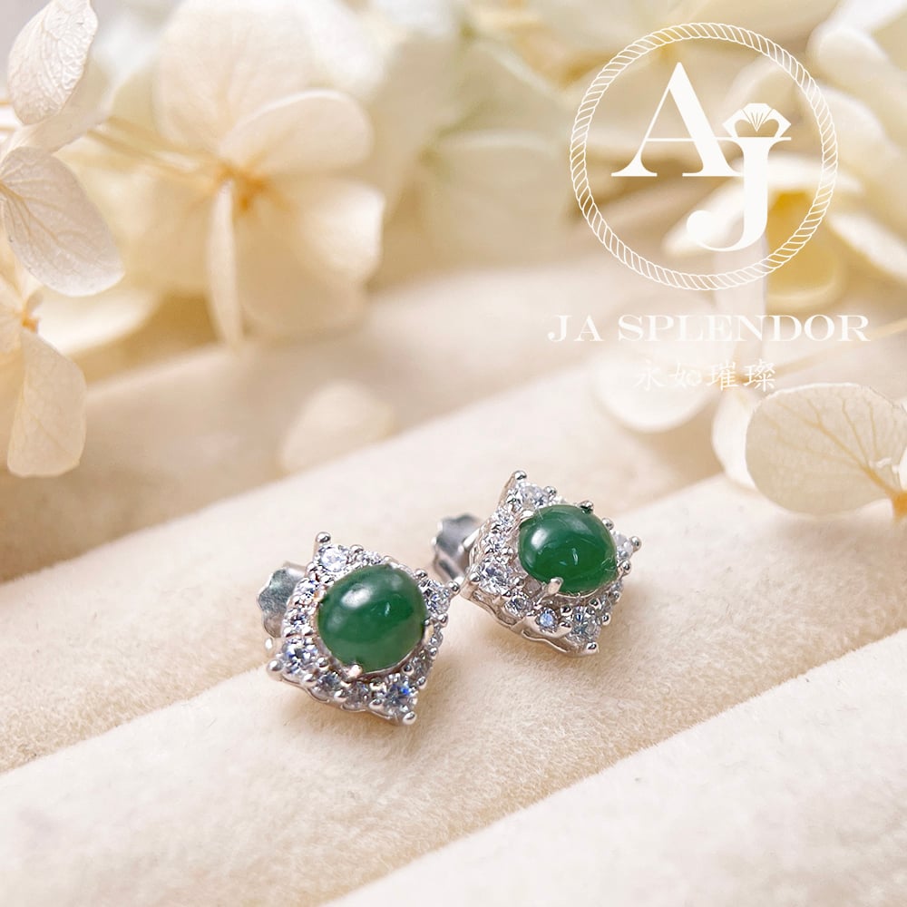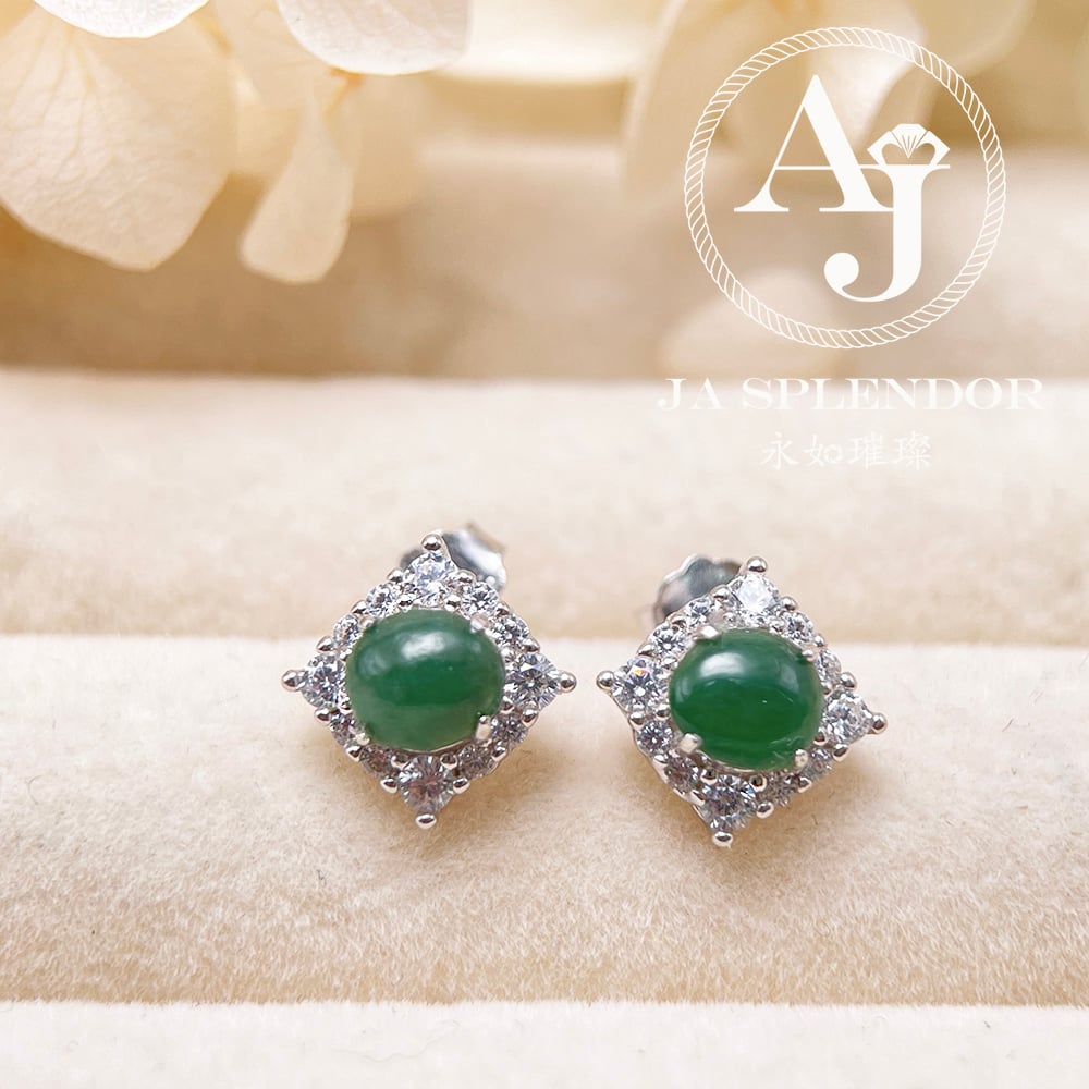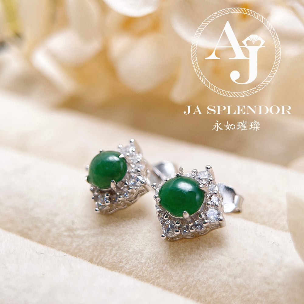 JE-88 天然翡翠A玉 滿綠蛋面純銀耳釘