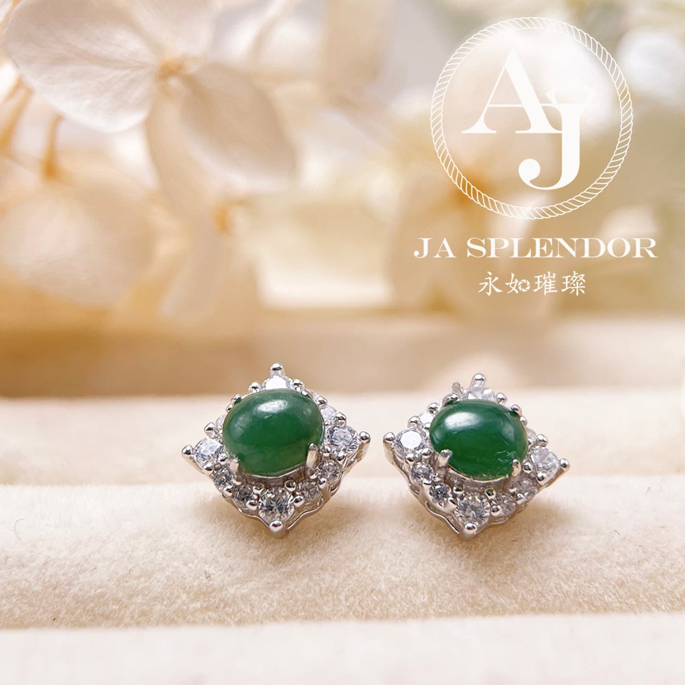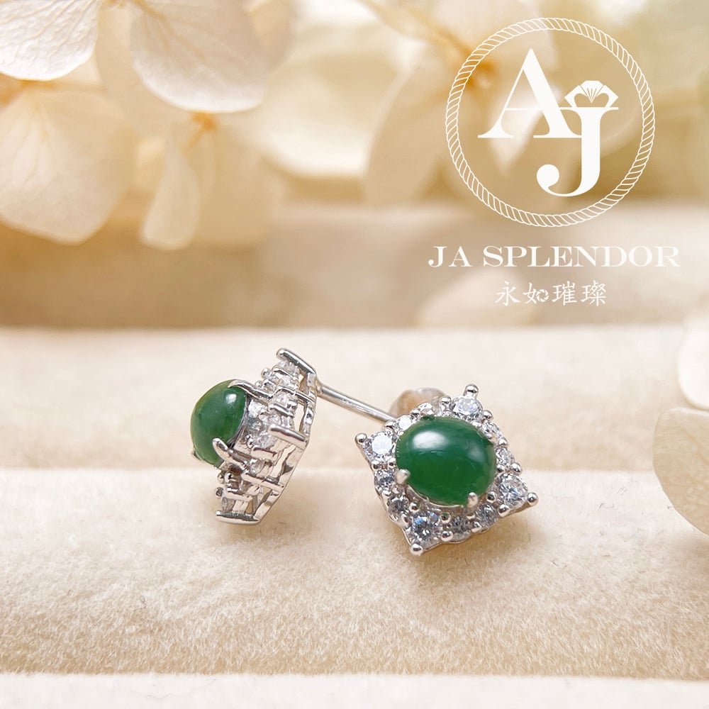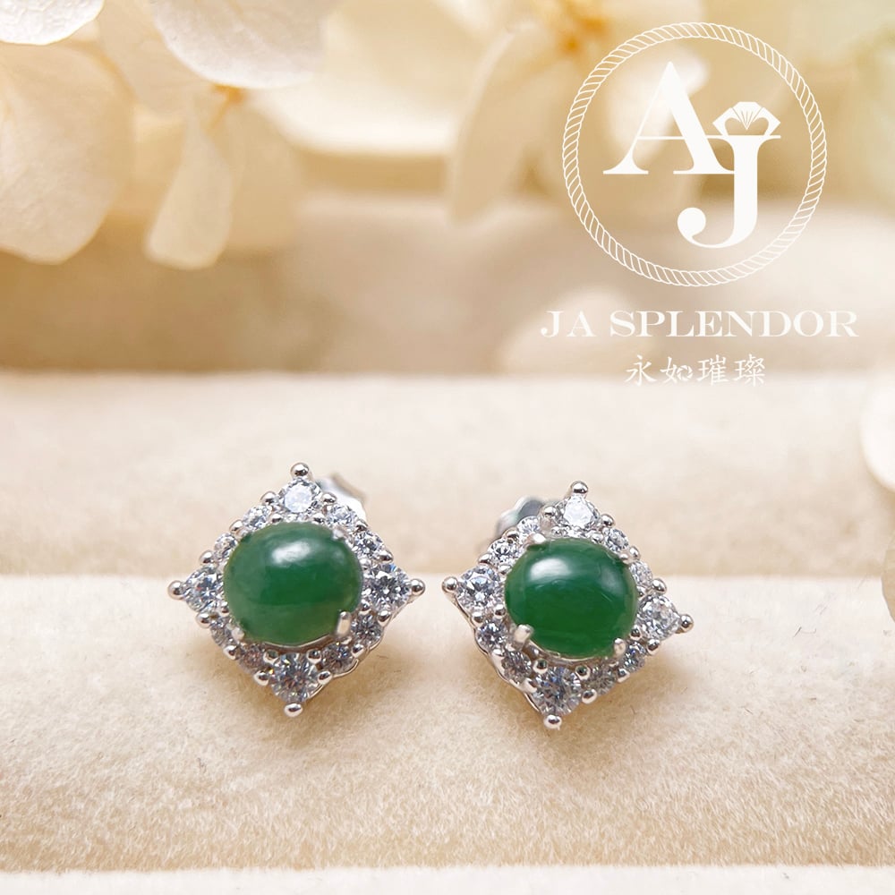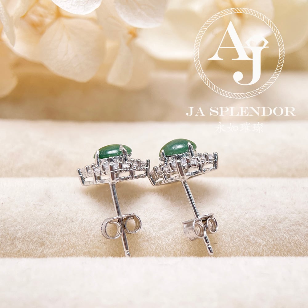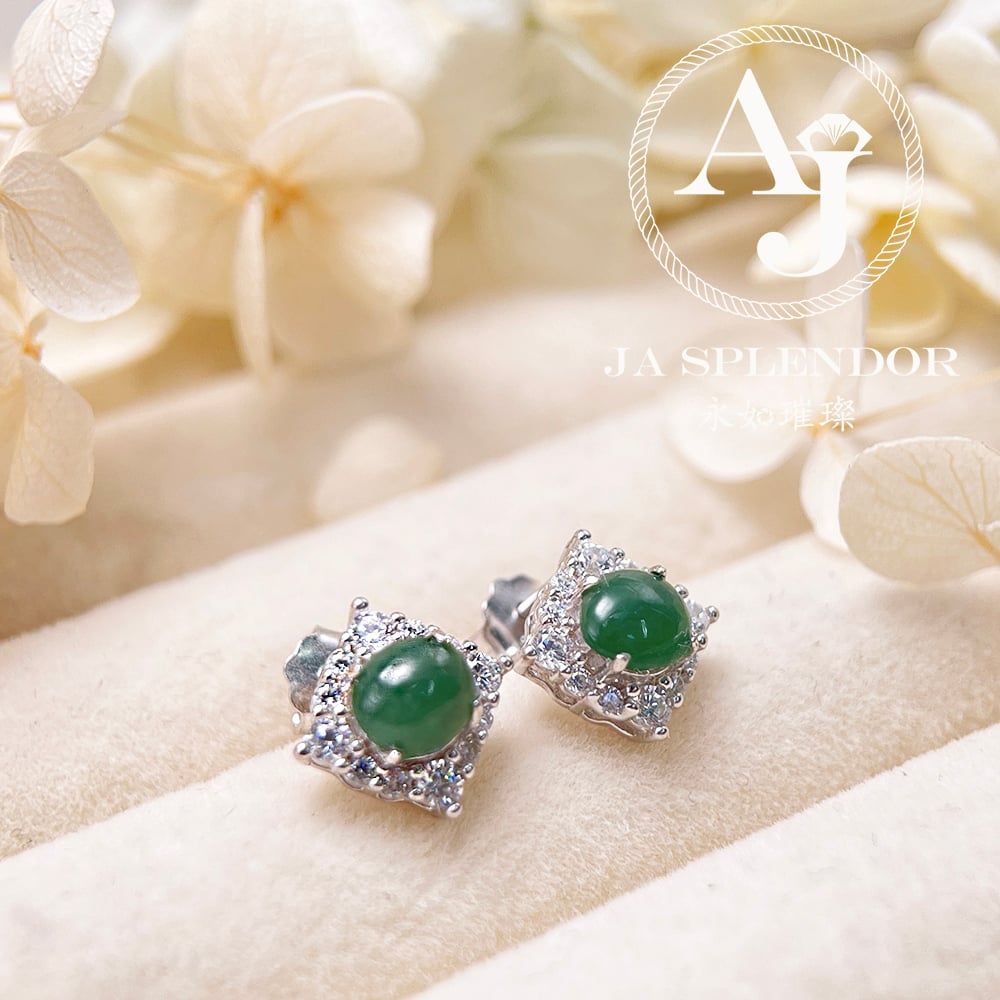 JE-88 天然翡翠A玉 滿綠蛋面純銀耳釘