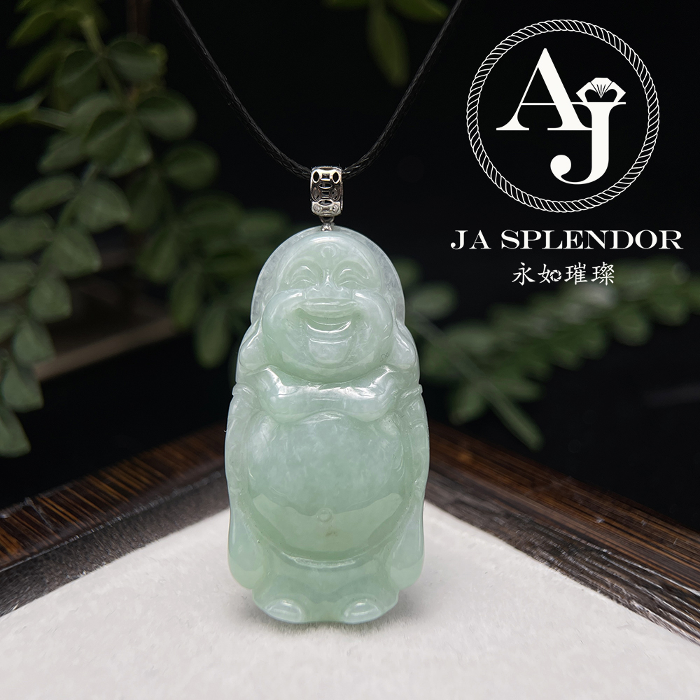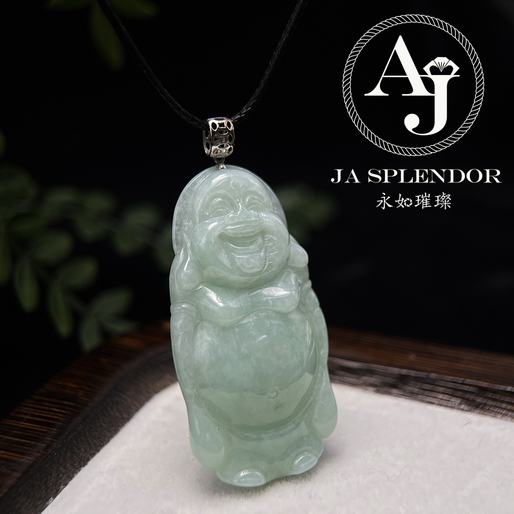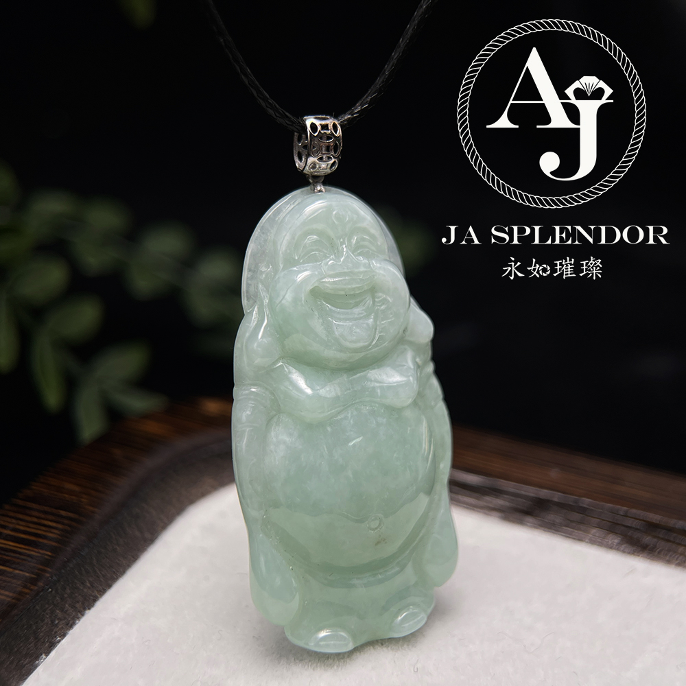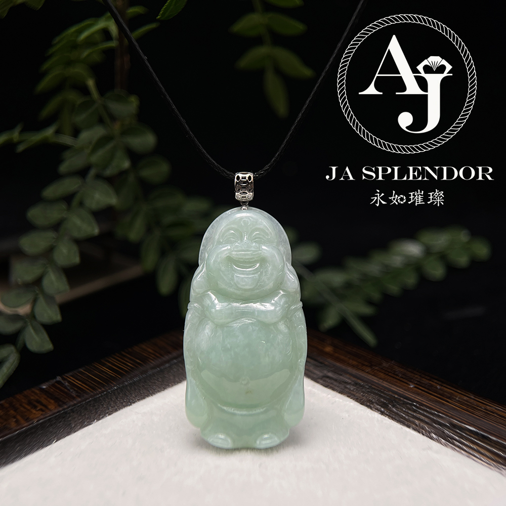 翡翠布袋佛时翡翠玉雕中常见的题材,经常佩戴能起到保平安的作用,是平安吉祥的象征