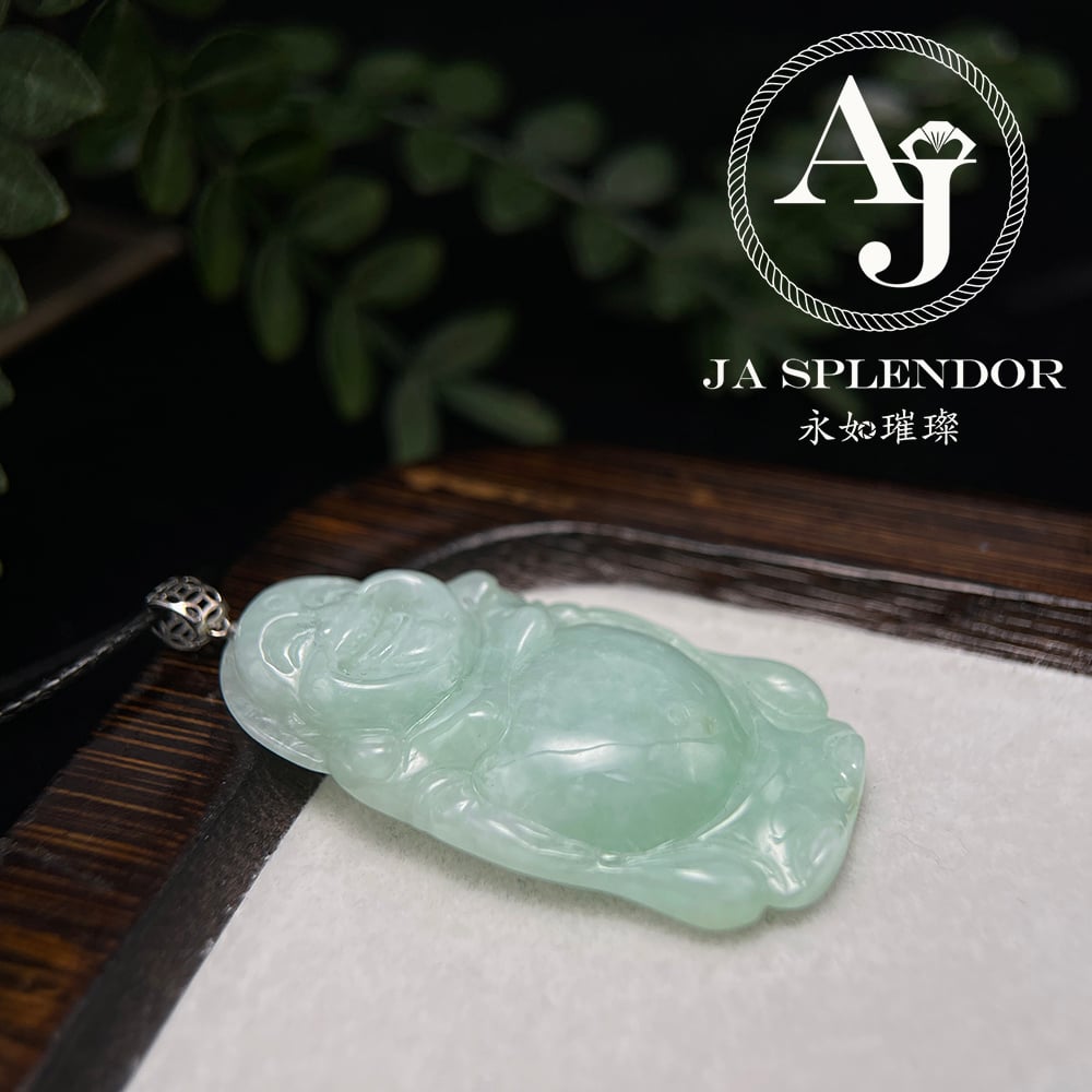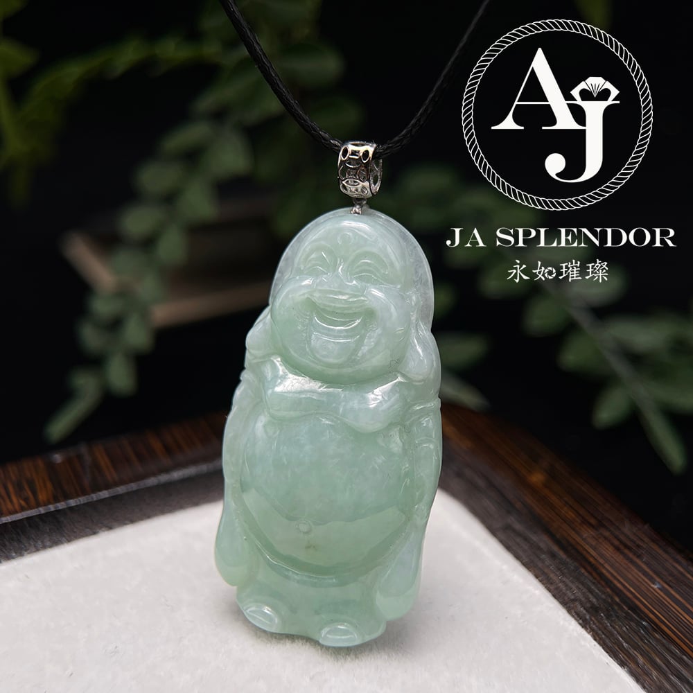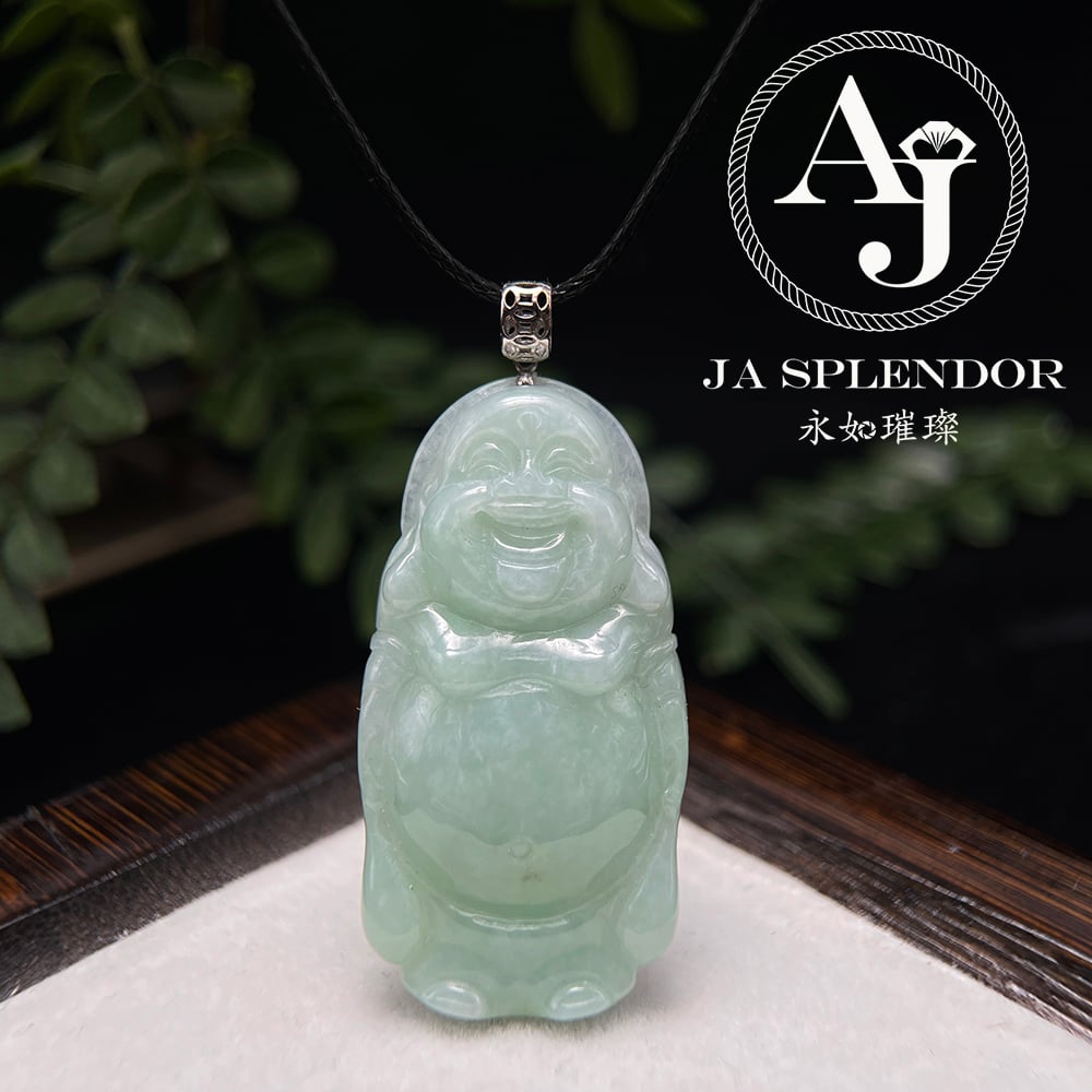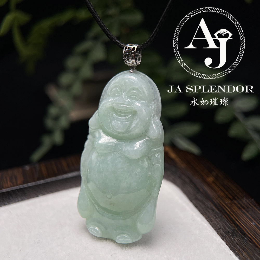 翡翠布袋佛时翡翠玉雕中常见的题材,经常佩戴能起到保平安的作用,是平安吉祥的象征