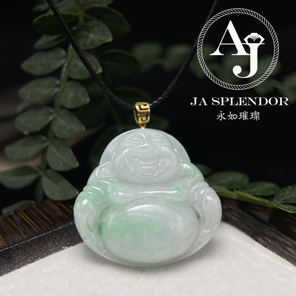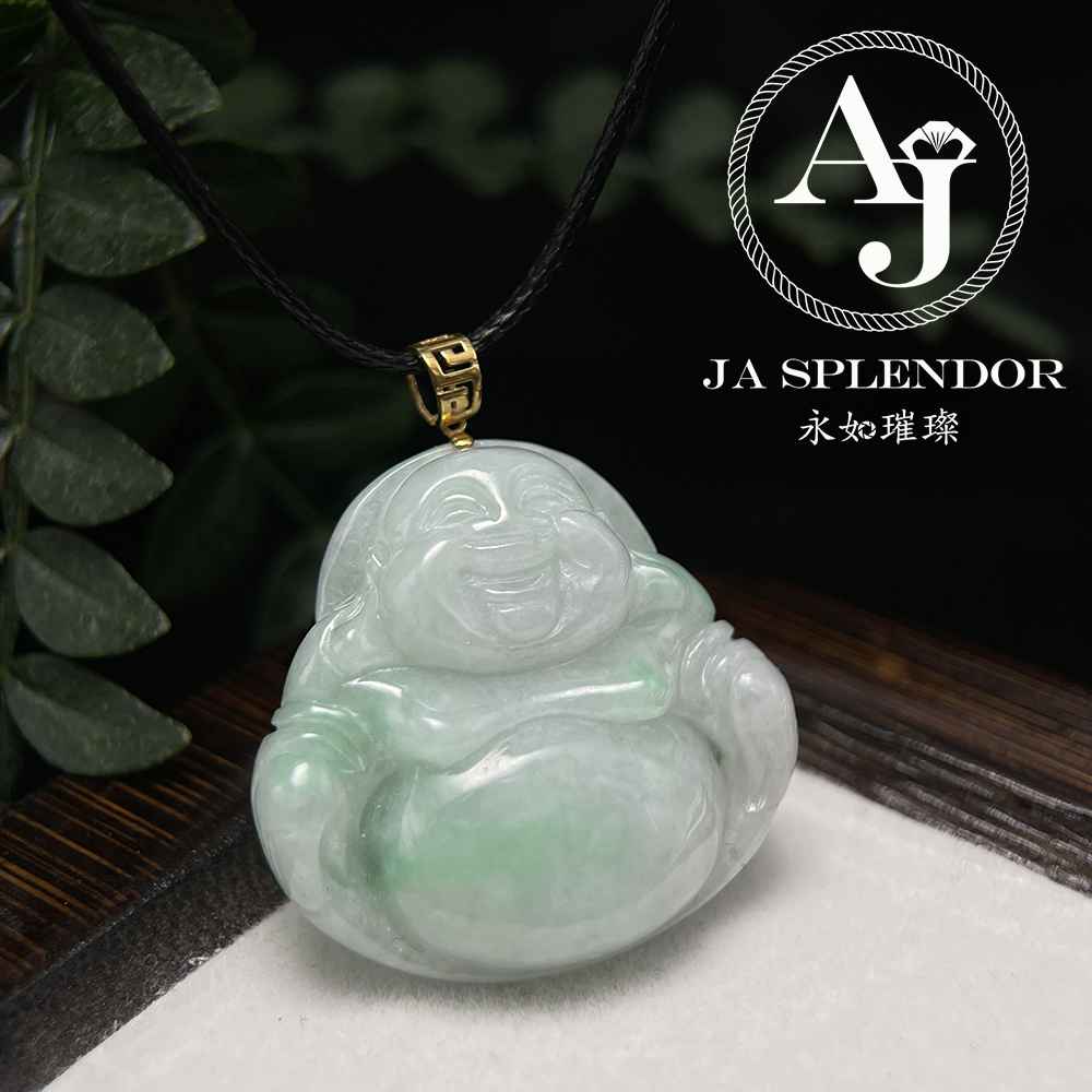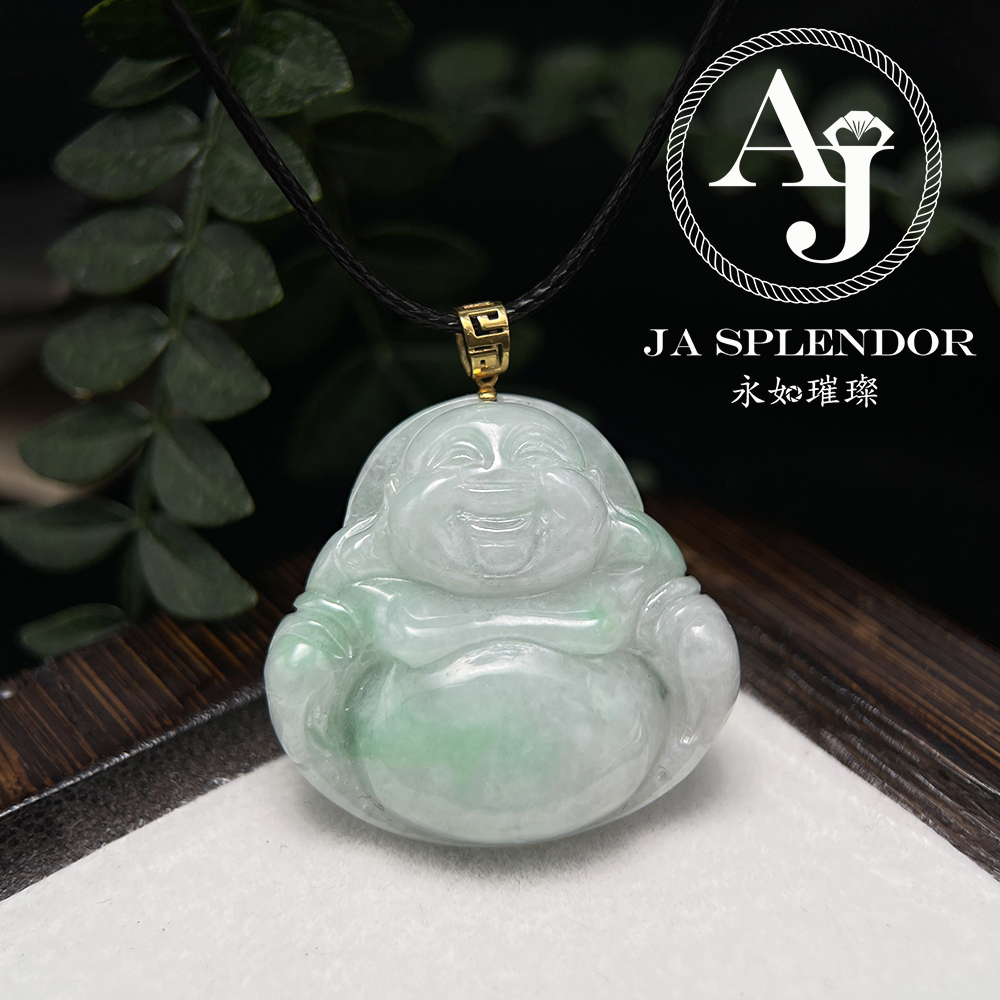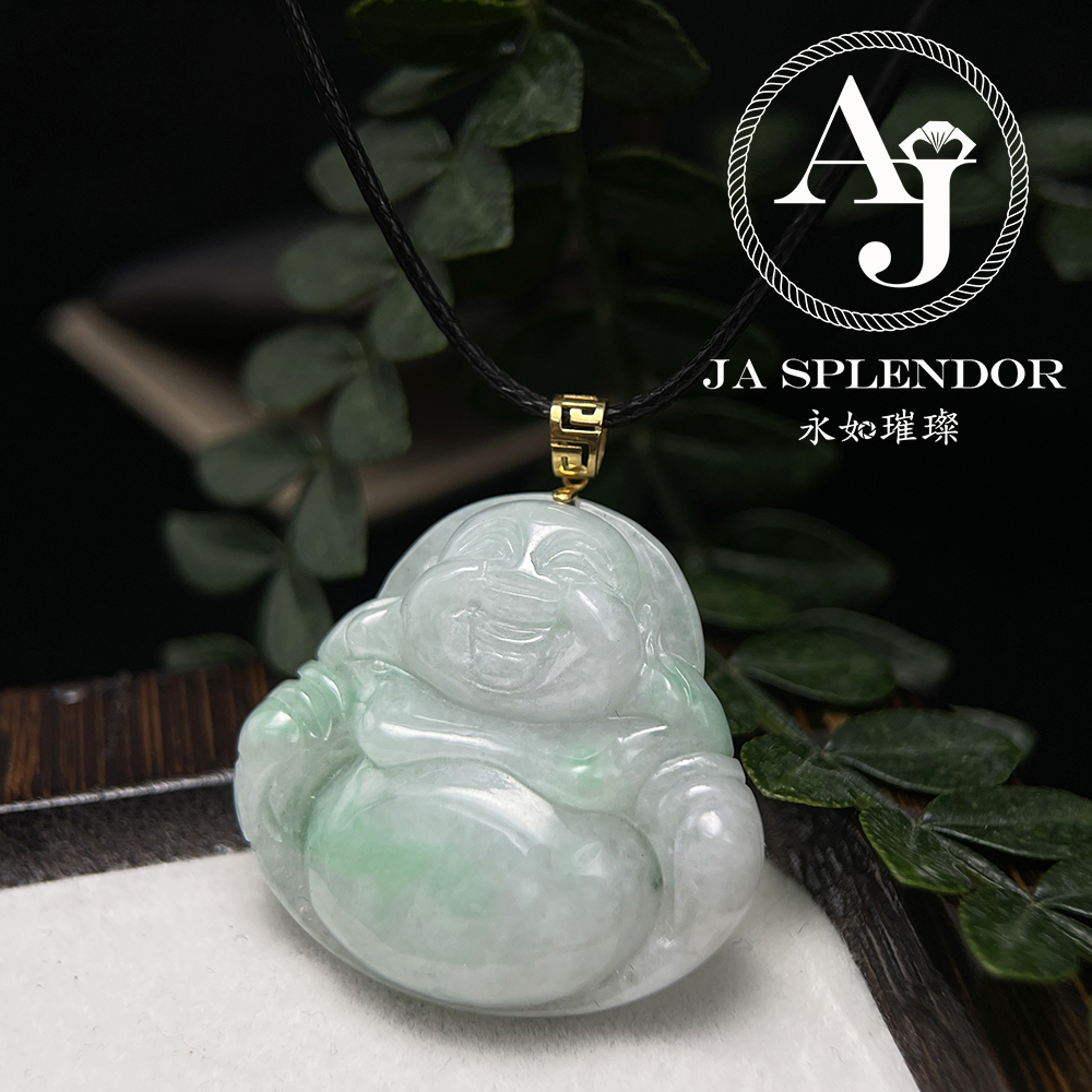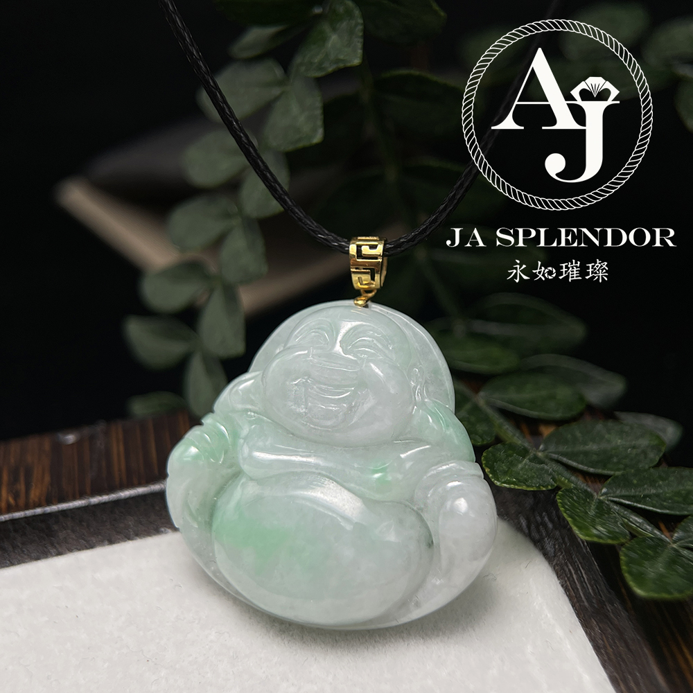 JNK-21 天然翡翠A玉 白底青大肚笑佛18K金吊墜