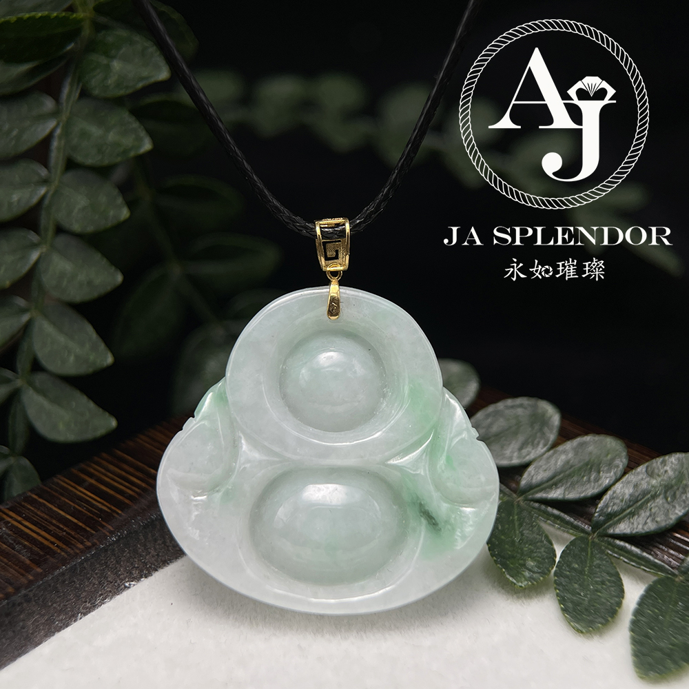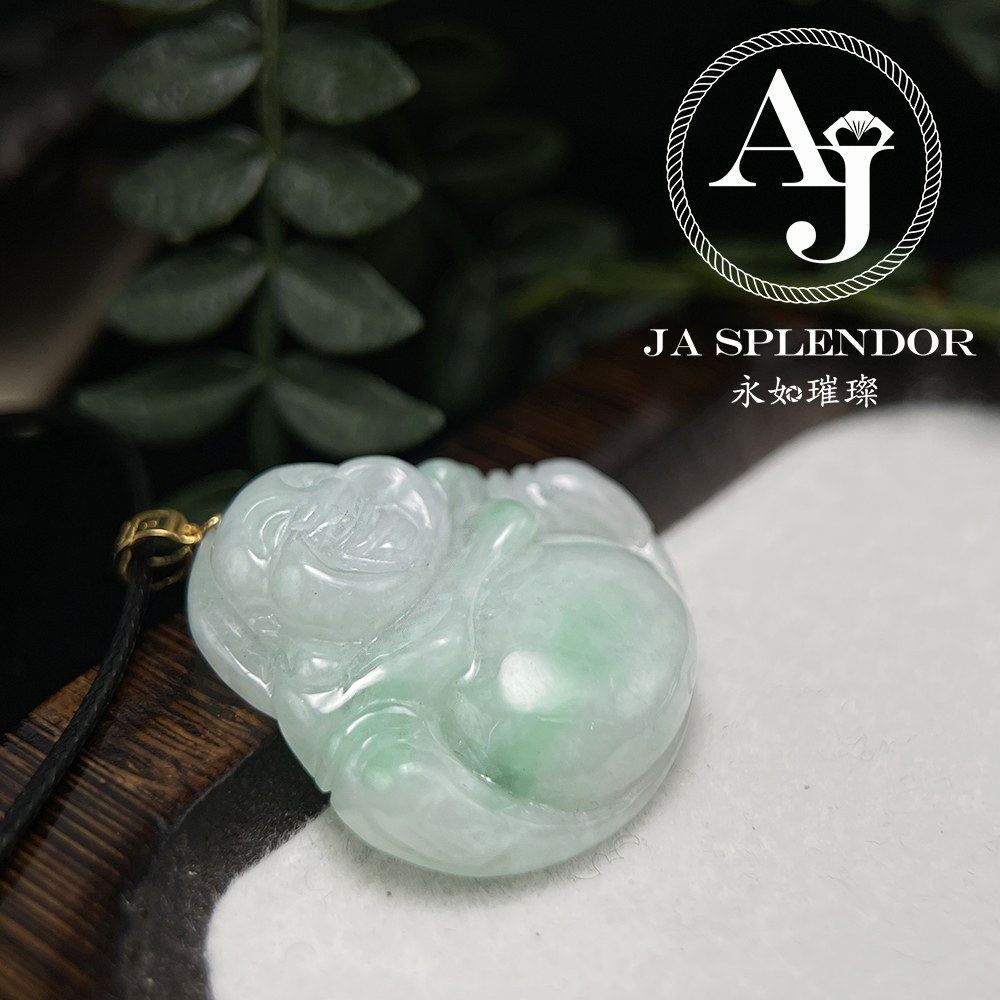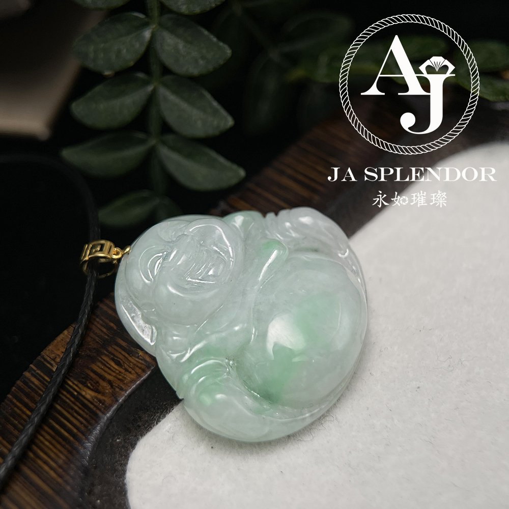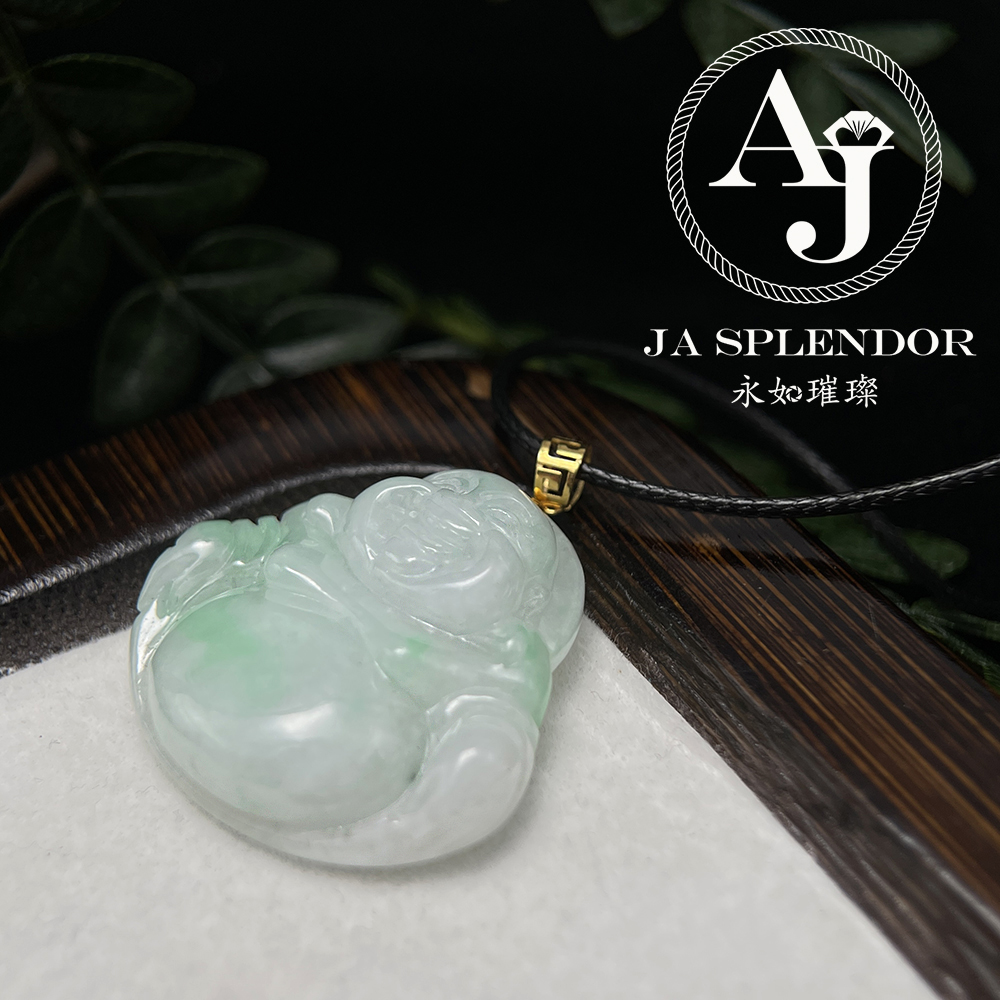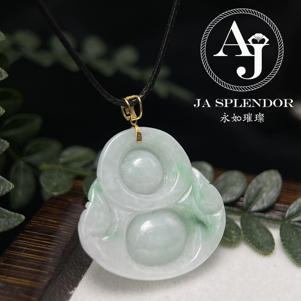 JNK-21 天然翡翠A玉 白底青大肚笑佛18K金吊墜