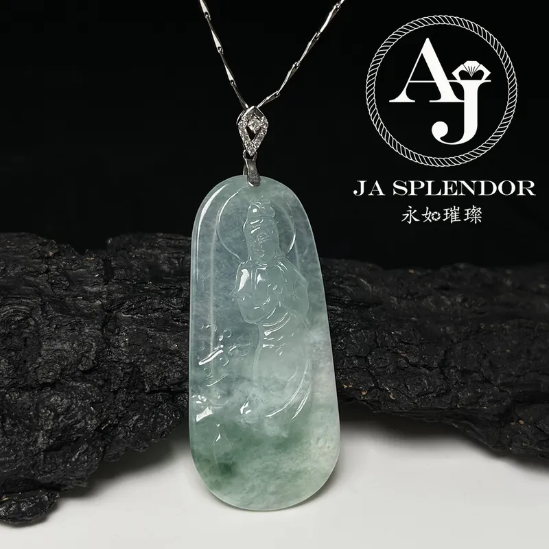 寓意: 佩戴翡翠觀音飾品能夠護佑佩戴者事事如意,官運亨通,保平安幸福。 一般說法是"男戴觀音女戴佛",男性佩戴觀音,一是因為觀音為女性屬陰,男性屬陽,取陰陽協調,男女互補之意,佩戴觀音能夠弱化男性性格中暴虐、衝動、好鬥的成分,讓其變得穩重成熟,魅力倍增,護佑其平安健康,事業有成;二是"觀音"諧音"官運",封建時期只有男性才能夠當官,建功立業,為國效力,故認為觀音保佑男子官運亨通,一帆風順。 女性佩戴玉觀音益處:一個方面是,玉觀音飾品流暢優美的線條,晶瑩透亮的玉質,能夠修飾女士優美曲線,點綴女士精緻的膚質;還有,隨著社會進步,公民平等,男女互敬,權利共用,女士佩戴觀音一樣可以得到庇護,事業成功。 |