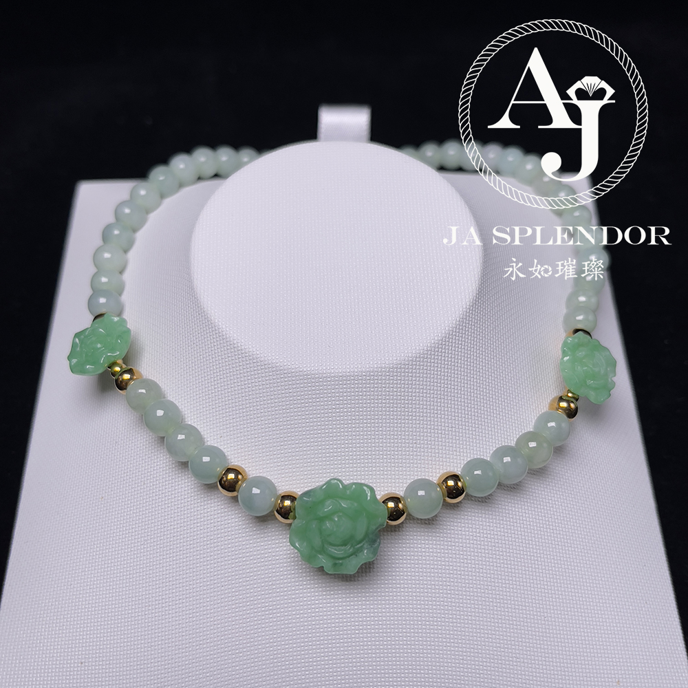 JN-2740 天然翡翠A玉-浪漫花型翡翠淡水珍珠手鏈